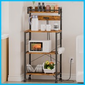 LunarLight キッチンベイカーラック 幅57×奥行39.2×高さ133cm キッチンラック レンジラック オープンラック プリンタ台 2口コンセント付き 棚板レールでスライド式 耐荷重134kg レンジ炊飯器など対応 Sフック ストッパーキャスター アジャスト付き 耐震転倒防止 強度安定 錆び防止 耐摩耗性 防水性 耐熱性機能 (ヴィンテージRB, スモールS)