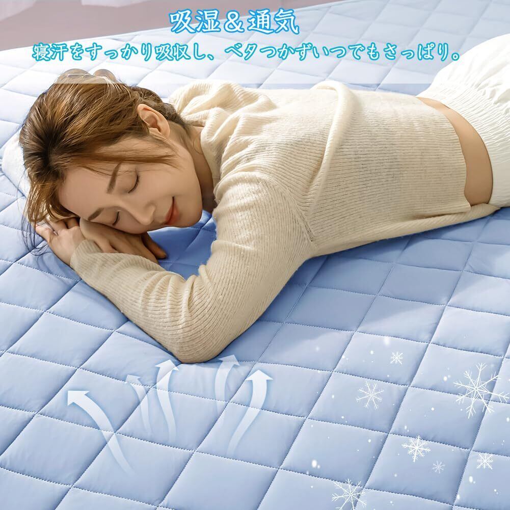 【新着商品】敷きパッド 夏用 セミダブル 冷感 QMax0.4以上 吸湿通気 ひんやり しきぱっと すべすべ 速乾 柔らかい クールパッド 抗菌防臭防ダニ 汗取り 涼しいシーツ 天然鉱石天然配合 洗える ズレ防止 cooling pad ブルー120×200cm