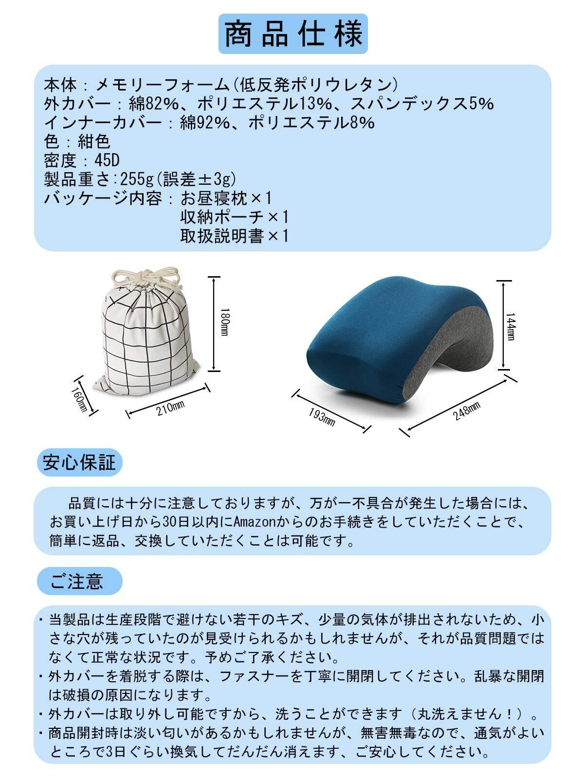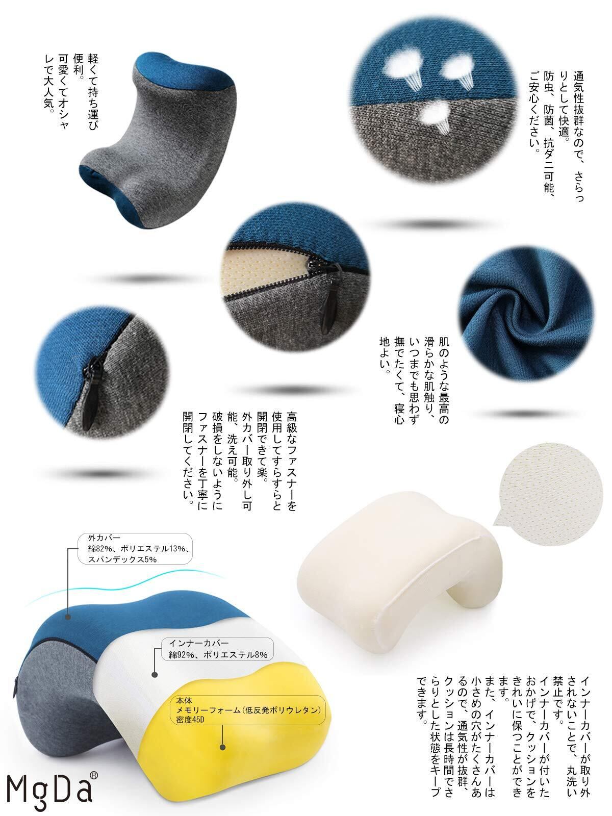 MgDa(メダ) 昼寝 枕 机 オフィス 腕が痺れない 寝心地良い 低反発 ポーチ付 (紺色xグレー)