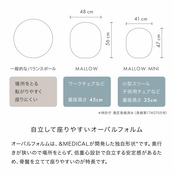 【自立して座りやすい オーバルフォルム】これまでにない新しいバランスボールのかたち、オーバルフォルムは、&MEDICALが開発した独自形状*です。奥行きが狭いので場所をとらず、低重心設計で自立する安定感があるため、骨盤を立てて座りやすいのが特長です。 エアクッション構造の柔らかな座面は着座時に沈み、レギュラーサイズのMALLOWは一般的な椅子と同等の約45cm、ひと回り小さいMALLOW MINIは、スツールや子供用の椅子と同等の約35cmの座面高さになります。 *庁 意匠登録済み(登録第1740755号)