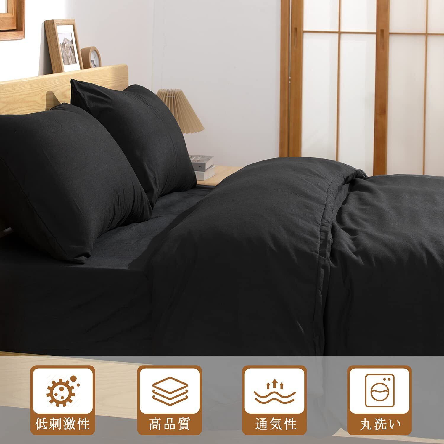 TOCOMOA 布団カバー セミダブル 4点セット 掛け布団カバー ベッドカバー 布団セット 敷布団カバー ボックスシーツ ベッドシーツ 枕カバー 寝具カバー 和式 洋式 敷き布団用 マットレスカバー ふとんカバー かけ布団カバー あたたかい 黒 ブラック black (ブラック, セミダブル・4点セット)