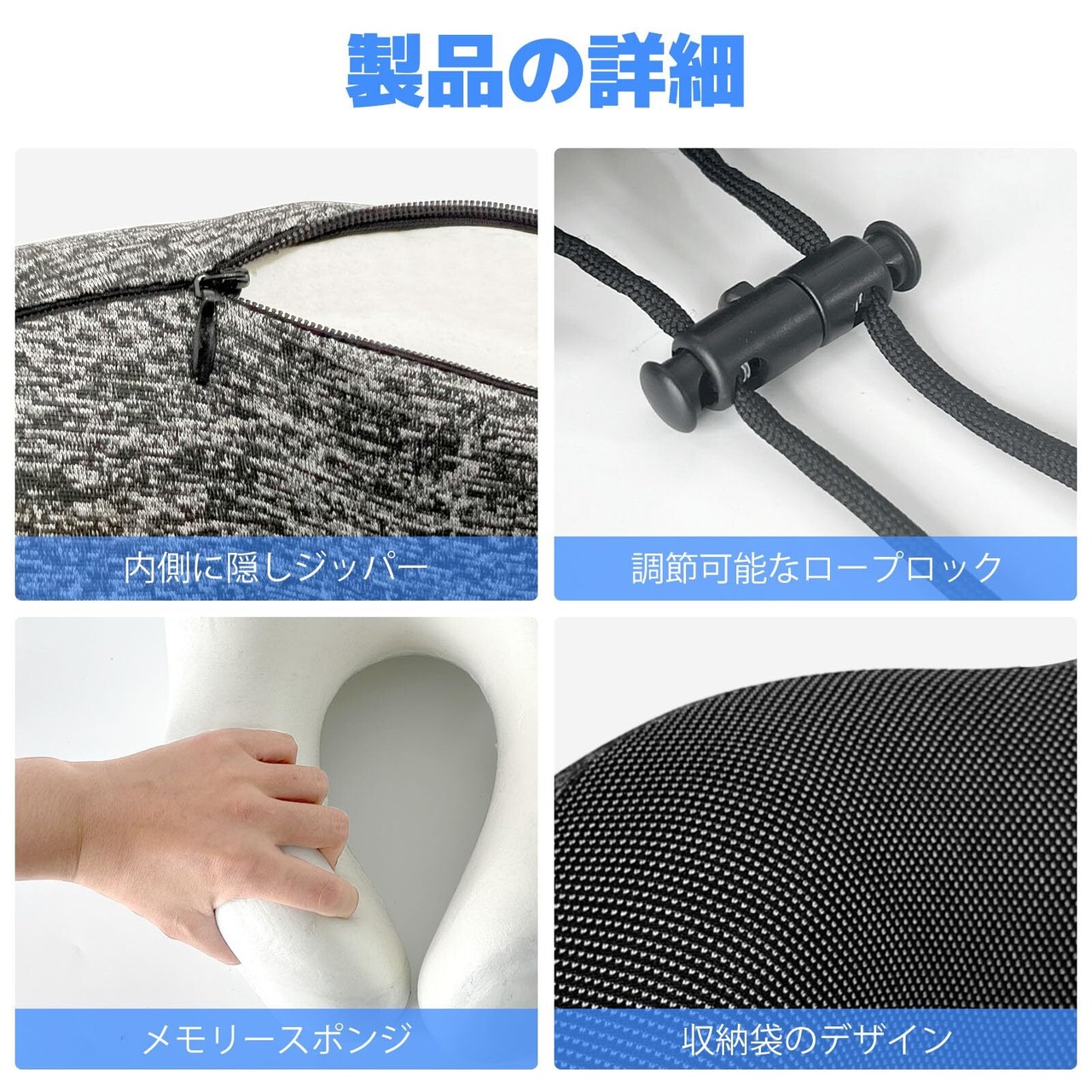 スタイリッシュでシンプルなデザイン:滑らかな外観で、取り外し可能なカバーはネックピローを清潔に保ち、旅行がより楽しくなります。