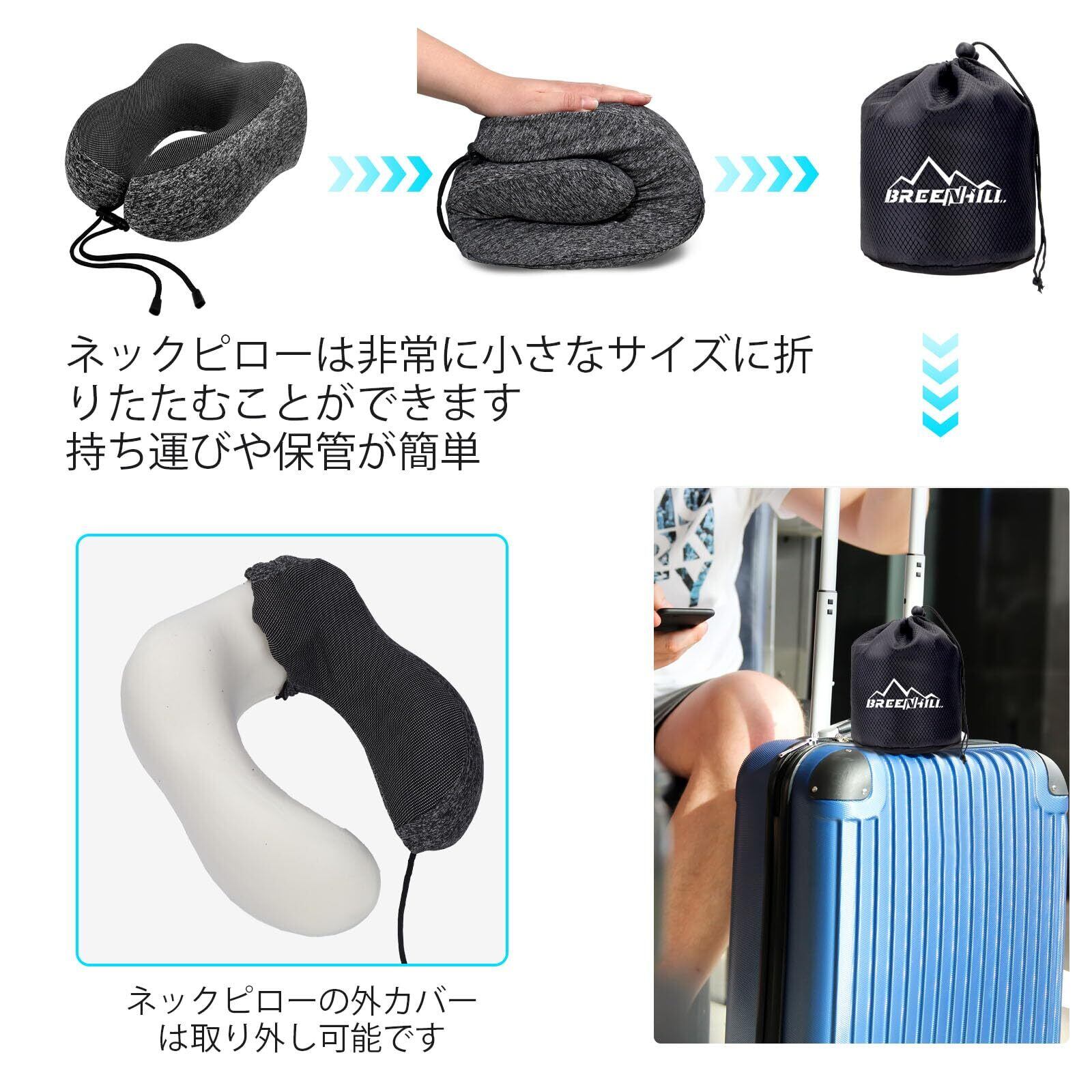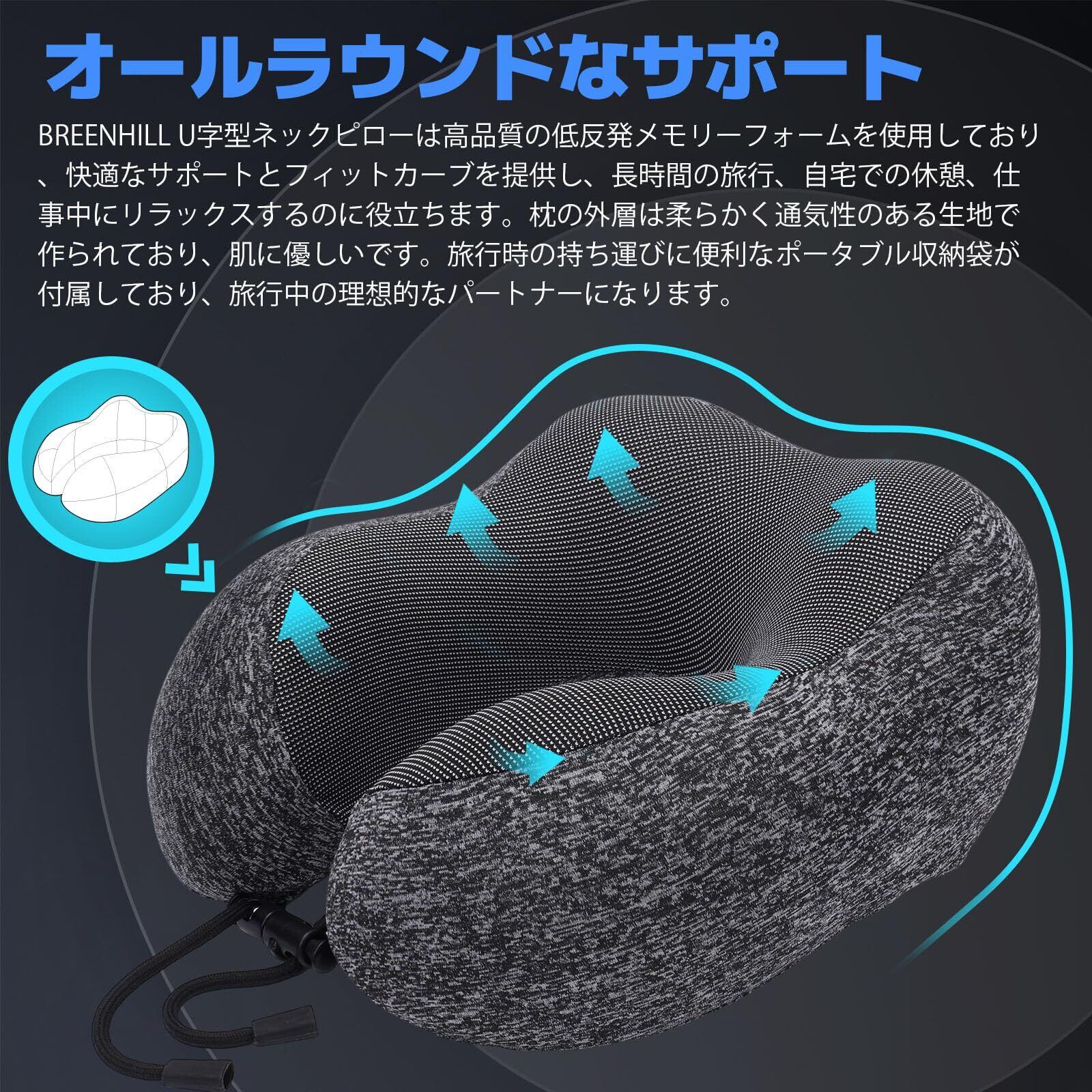 「BREENHILL ネックピロー」は、旅行やオフィス、家庭まで幅広く使用できる低反発素材の首枕です。U型のデザインで、首をしっかりサポートし、快適な眠りを提供します。持ち運びが簡単で、あなたの旅のお供にぴったりです。