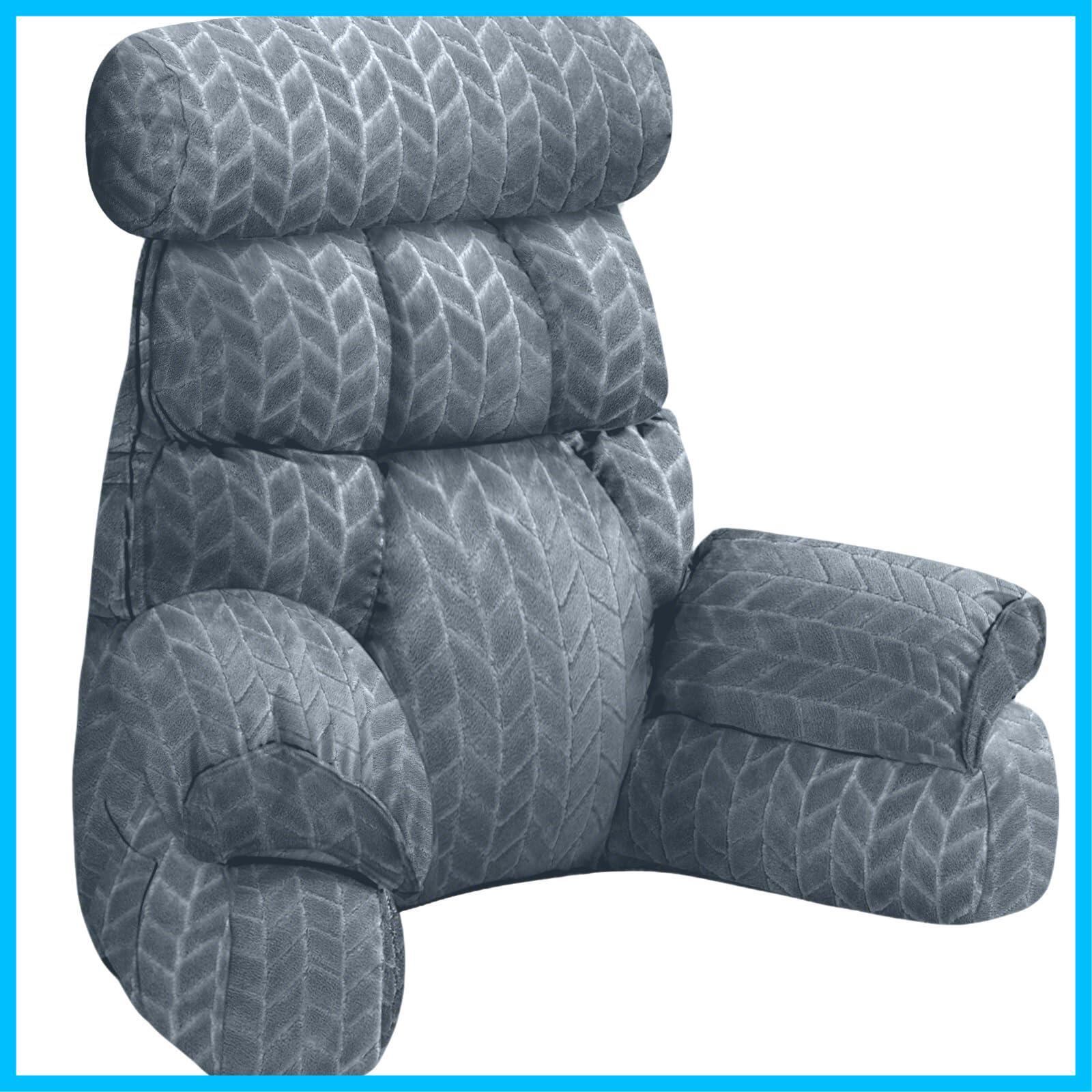 背もたれ クッション,アームレスト付き読書枕 大人向けサポートピロー,ベッド&ソファ用 テレビ枕・ゲームやリラックスに最適なリーディングクッション(けむりはいいろ,65*23cm)