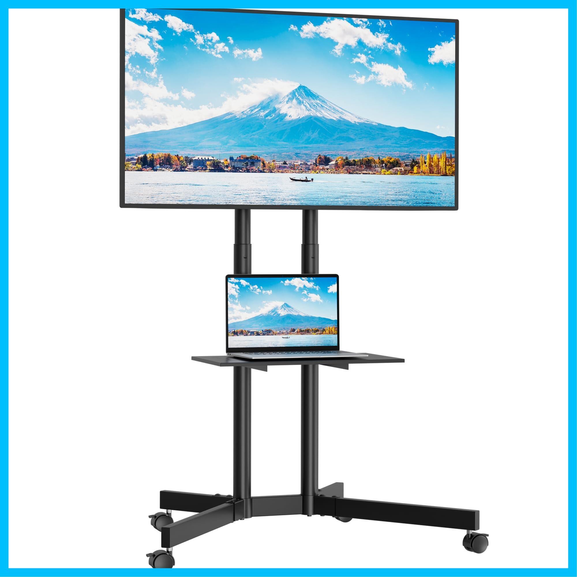 1homefurnit 移動式 壁寄せテレビスタンド 32-75インチ対応 キャスター付き VESA600x400mm 高さ調整可能 耐荷重55kg スイベル ハイタイプ テレビ台 ロータイプ対応 ブラック