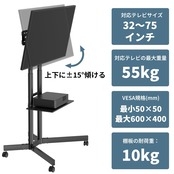 【特価商品】1homefurnit 移動式 壁寄せテレビスタンド 32-75インチ対応 キャスター付き VESA600x400mm 高さ調整可能 耐荷重55kg スイベル ハイタイプ テレビ台 ロータイプ対応 ブラック