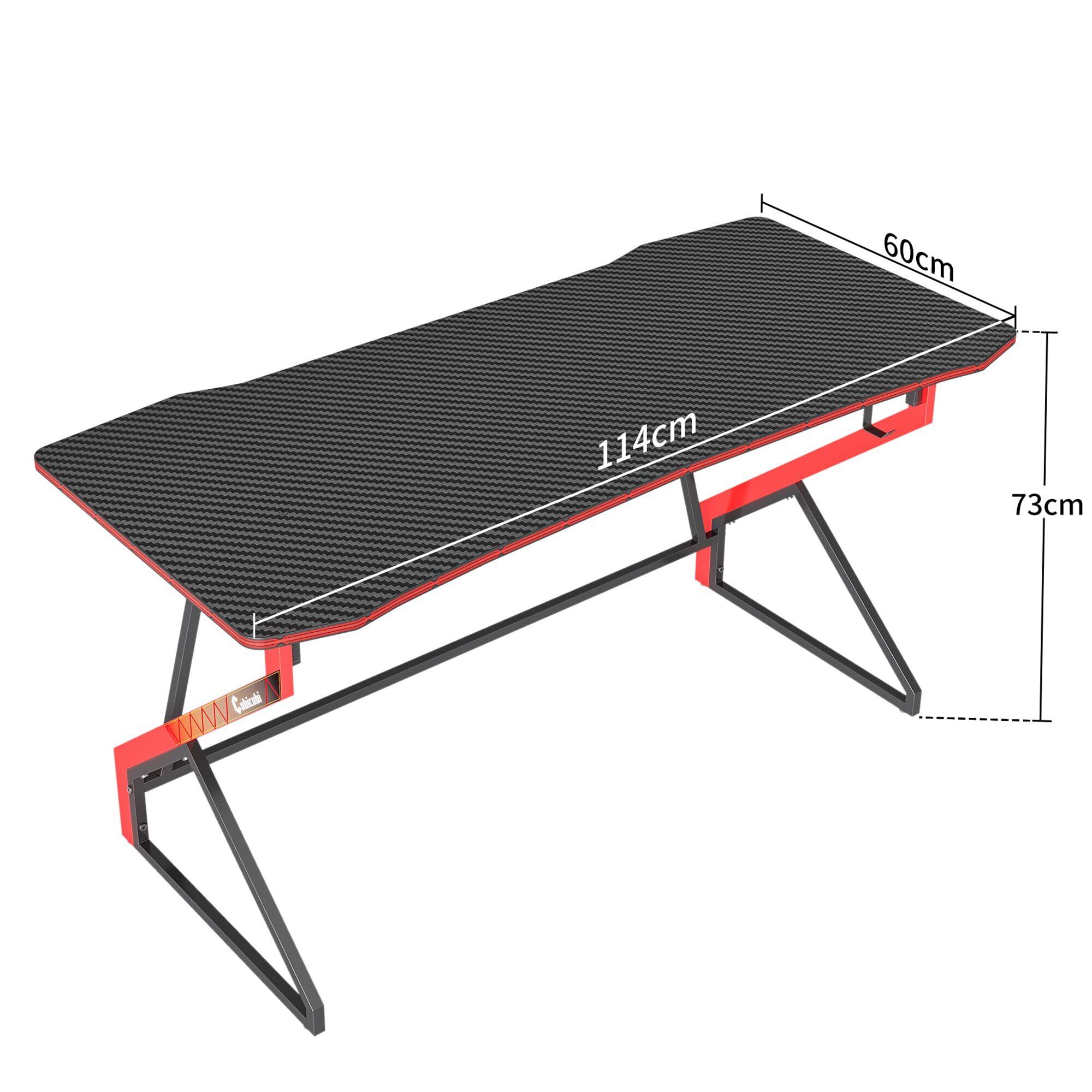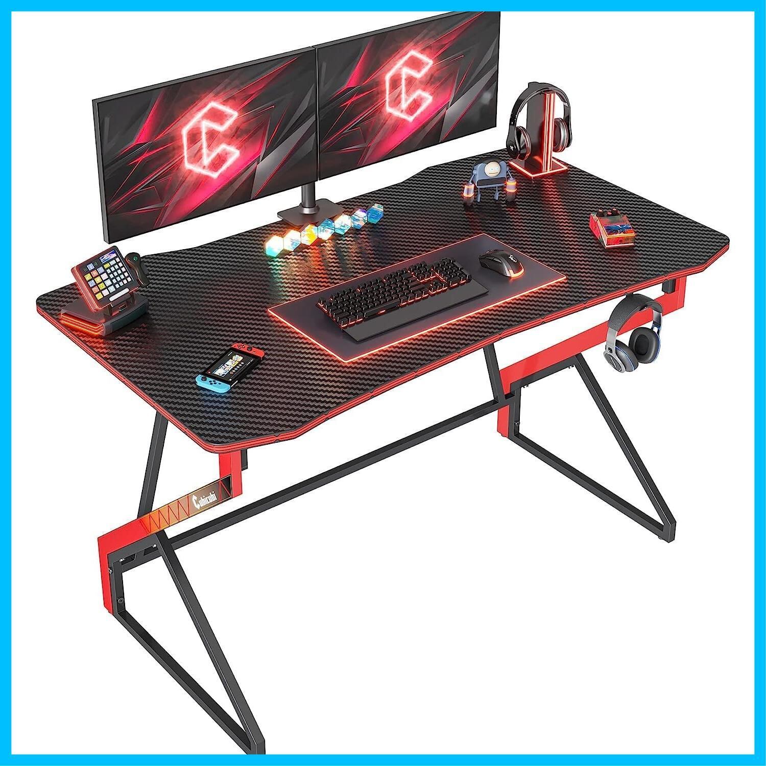 CubiCubiゲーミングデスク 幅114cm*奥行60cm*高さ73cm 組み立て簡単 頑丈 おしゃれ ゲーミングテーブル パソコンデスク ゲーマー向き デスク ゲーム実況 炭素繊維天板 PCデスク 一人暮らし ヘッドフォンフック付き ゲーム用 ブラック