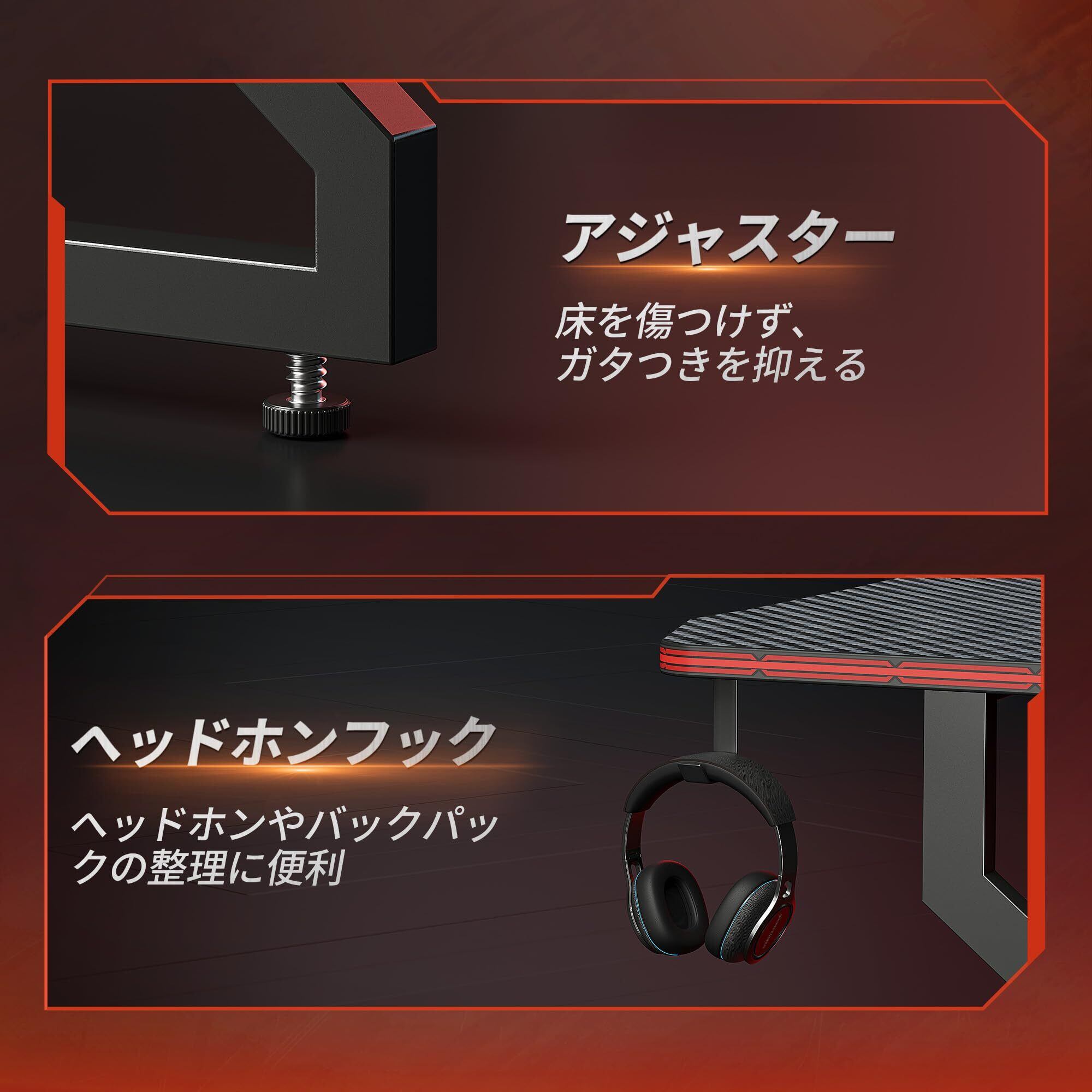 【ゲーム向けのデザイン】:本ゲーミングデスクは人間工学に基づいたデスクトップデザインを採用しており、独特の炭素繊維テクスチャーを使用して、ゲーム中に最高のパフォーマンスにサポートします。