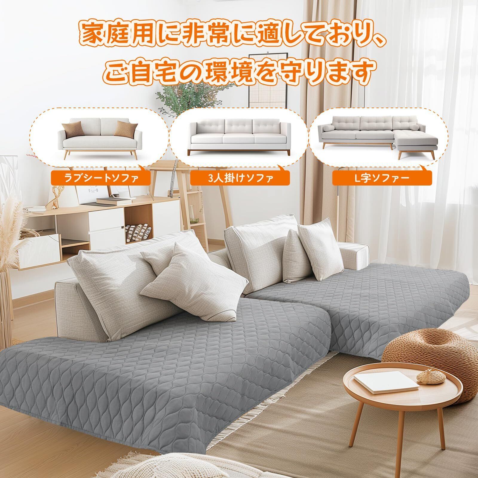 このソファーカバーは、防水性を備えており、ペットによる汚れや傷から家具を守ります。犬猫対策としても効果的で、飼われているペットがいる家庭でも安心してご使用いただけます。また、爪とぎ防止機能を持ち合わせており、家具の長寿命をサポートします。