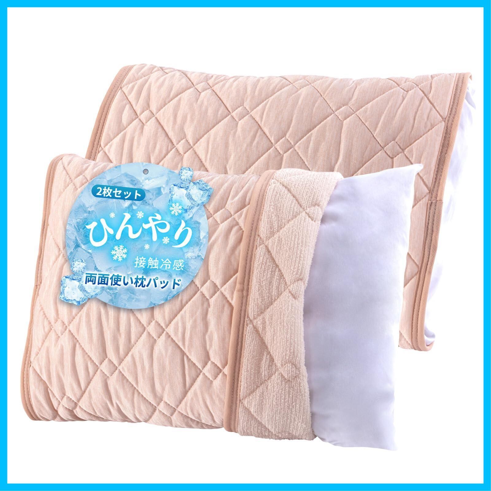 MISOLER 超冷感リバーシブル枕パッド 2枚セット Q-MAX 0.52 帝人マイティトップII ECO採用|通気・吸湿速乾・抗菌防臭・機洗対応|オールシーズン快眠 50×60cm ベージュ
