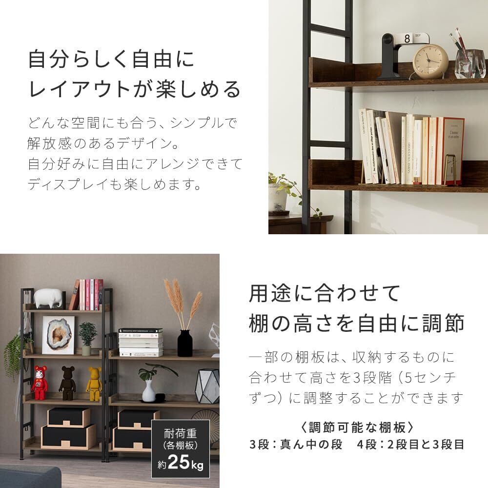 このシェルフは、5段の棚を備えており、書籍や雑誌、インテリア小物などをしっかり収納できます。オープンなデザインにより、収納したアイテムを手軽に取り出すことができ、実用的でありながら美しいディスプレイも可能です。お好きなアイテムを飾って、個性的な空間を演出できます。