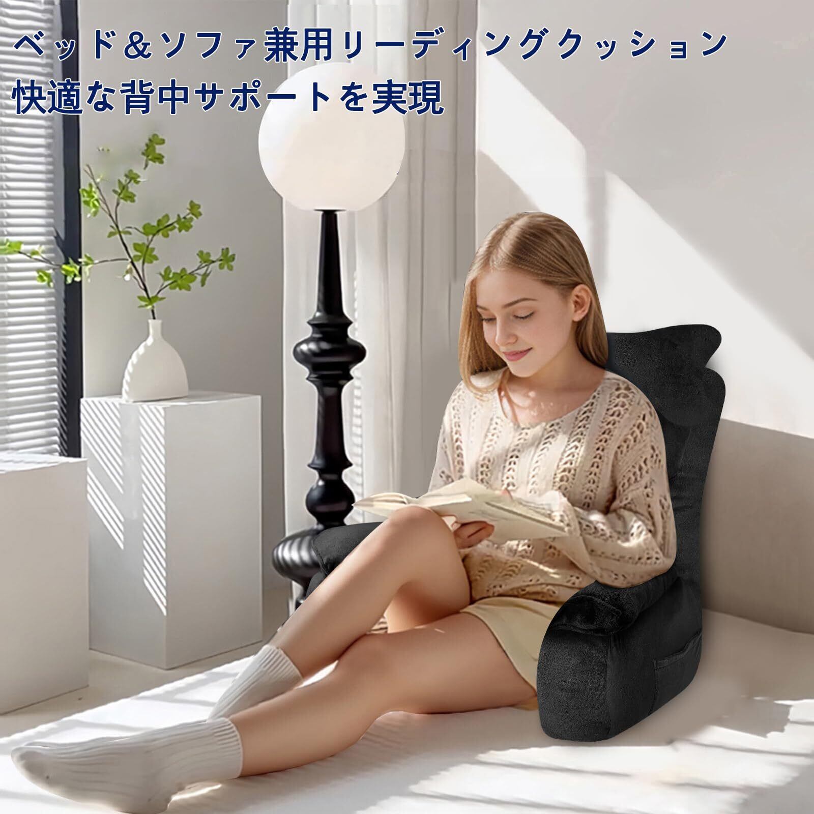 背もたれ クッション,アームレスト付き読書枕 大人向けサポートピロー,ベッド&ソファ用 テレビ枕・ゲームやリラックスに最適なリーディングクッション(まっくろ,60*26cm)