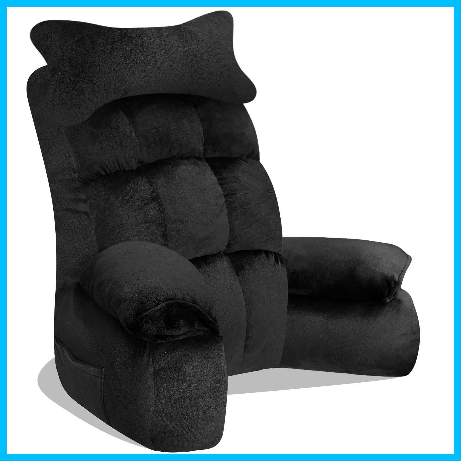 【数量限定】背もたれ クッション,アームレスト付き読書枕 大人向けサポートピロー,ベッド&ソファ用 テレビ枕・ゲームやリラックスに最適なリーディングクッション(まっくろ,60*26cm)