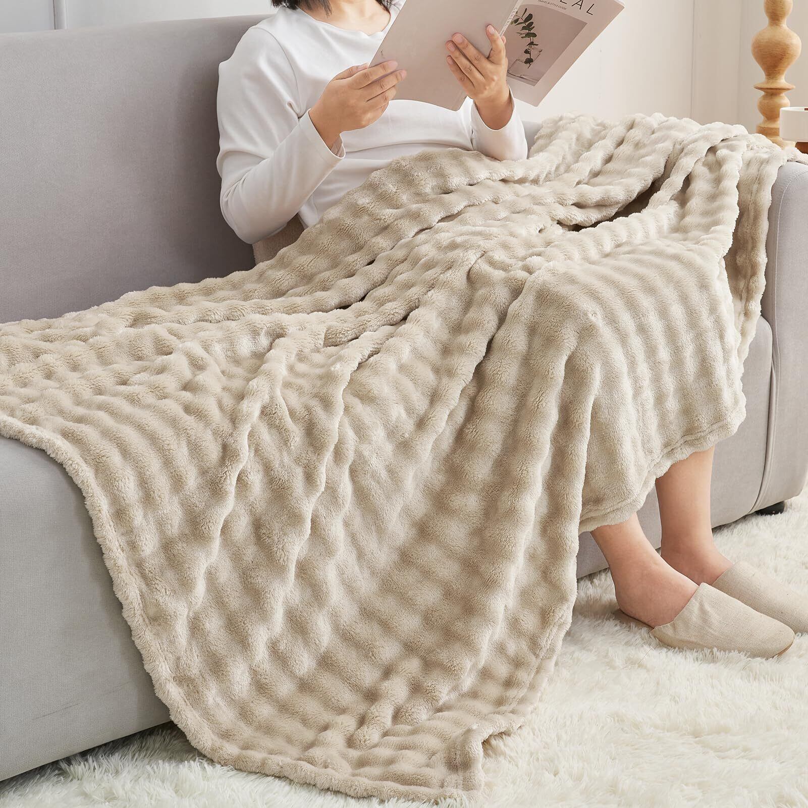 このブランケットは、柔らかいふわふわ素材で作られており、体を包み込むような快適さを実現しています。寒い日にも心地よい暖かさを感じることができ、リラックスしたひとときを演出します。