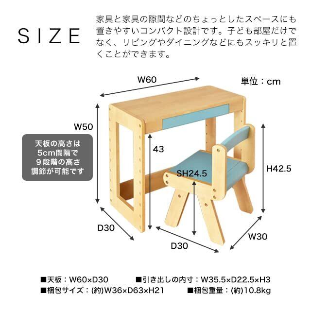 このスタディーセットは、成長に合わせて使える工夫が詰まっています。高さ調整可能なデスクに、文房具やおもちゃもしっかり収納できる引き出し付き。お子様が学ぶことの楽しさを実感しながら、効率良く勉強をサポートします。