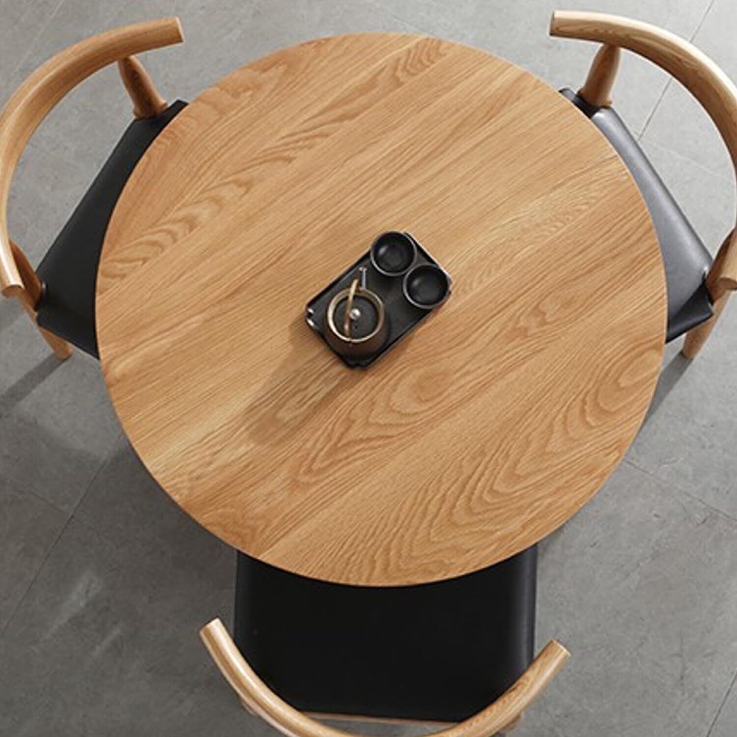 テーブルの円形デザインは、角がなく、接客や会話がしやすい特徴があります。コンパクトでありながら、広がりを感じる形状が、食卓をより開放的にし、楽しい時間を提供します。