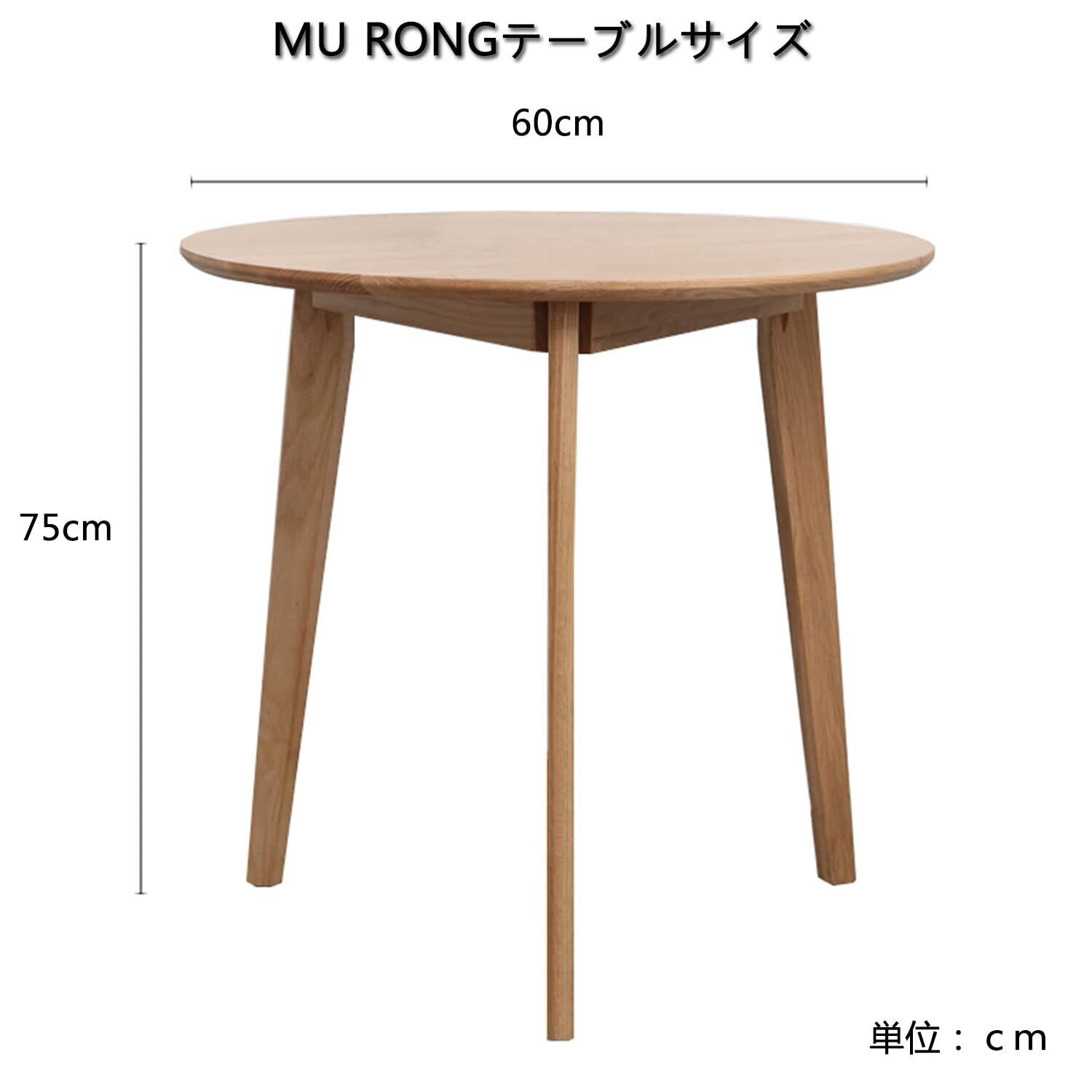 MU RONG ダイニングテーブル 丸テーブル 円形 アメリカオークウッド 無垢材 木製 人気 ラウンドテーブル 直径60cm 2~4人用