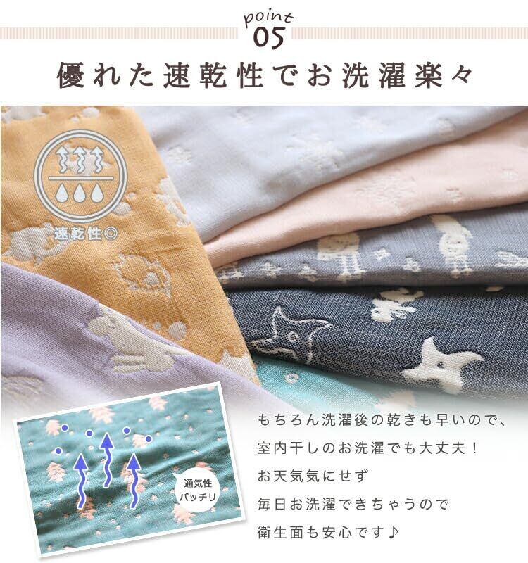 すべて天然素材のガーゼで作られているため、敏感なお肌の方も安心してご使用いただけます。肌触りが良く、ふんわりとした感触で包み込んでくれるので、昼寝の時間をさらに快適に演出します。