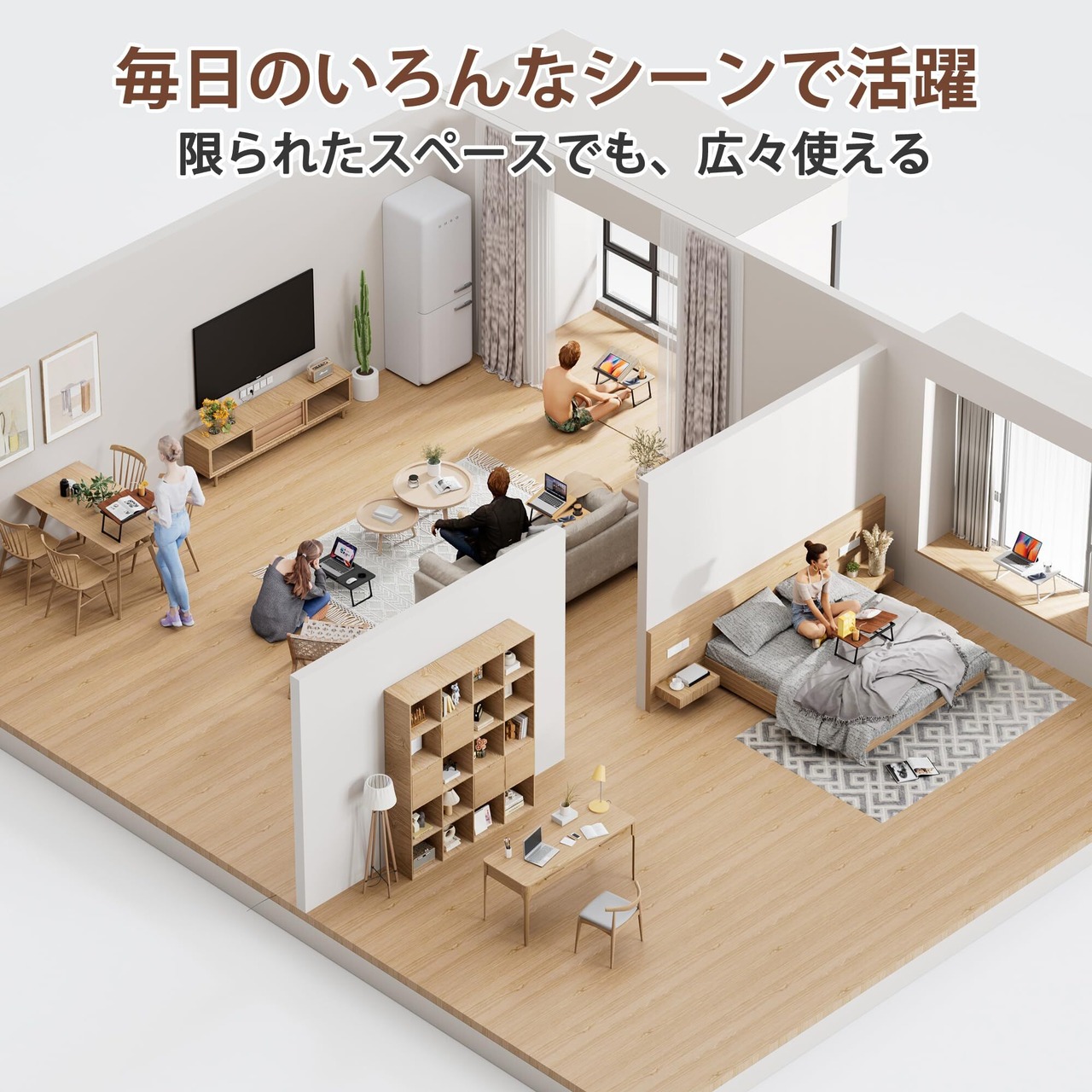 【軽量&省スペース、使わない時はスッキリ収納】:本体重量は約2.95kgと軽量で、女性でも楽に持ち運び可能。折りたためば厚さわずか5cmほどになり、ベッド下やソファのすき間にも収納できます。在宅ワークやアウトドアにもおすすめ。