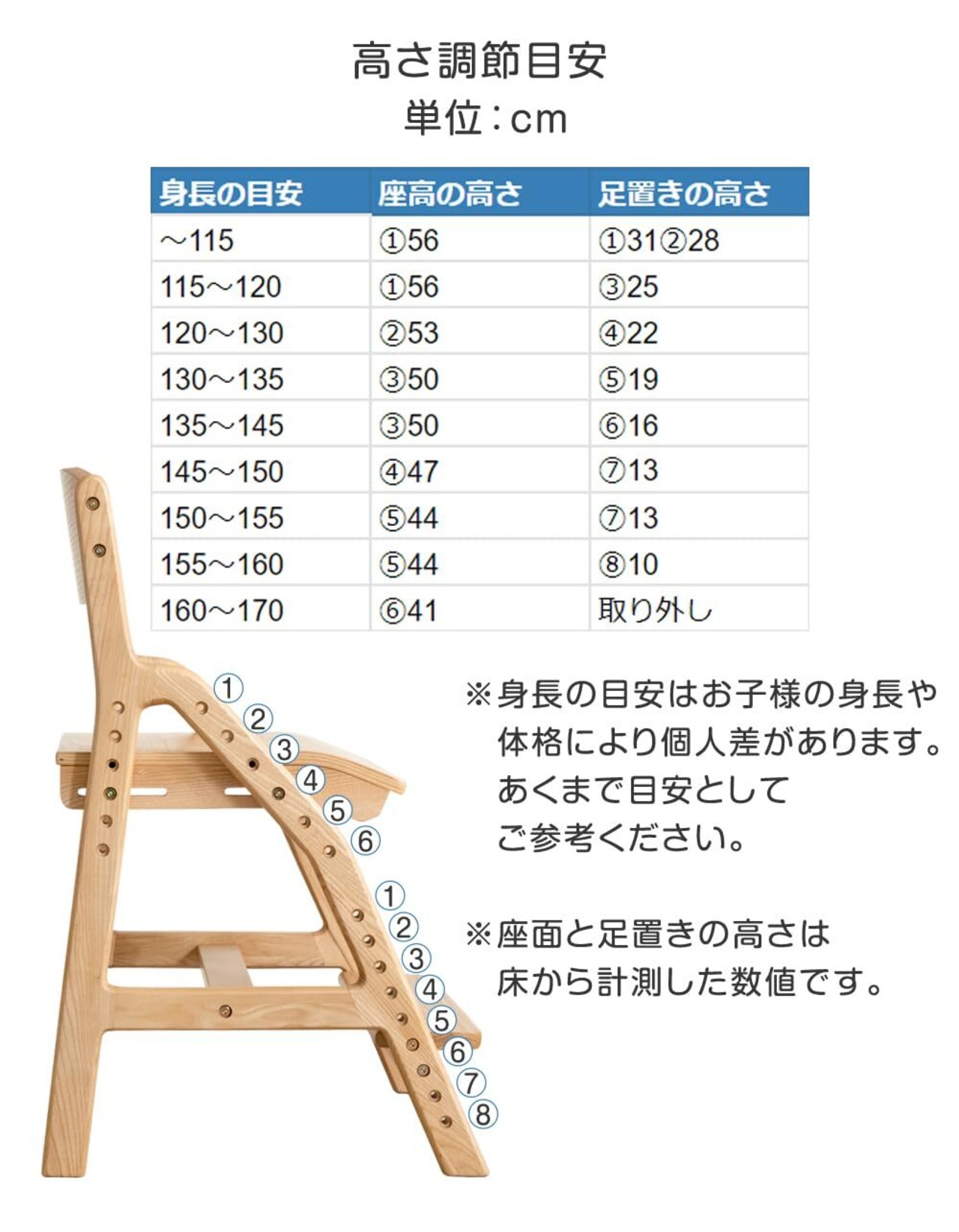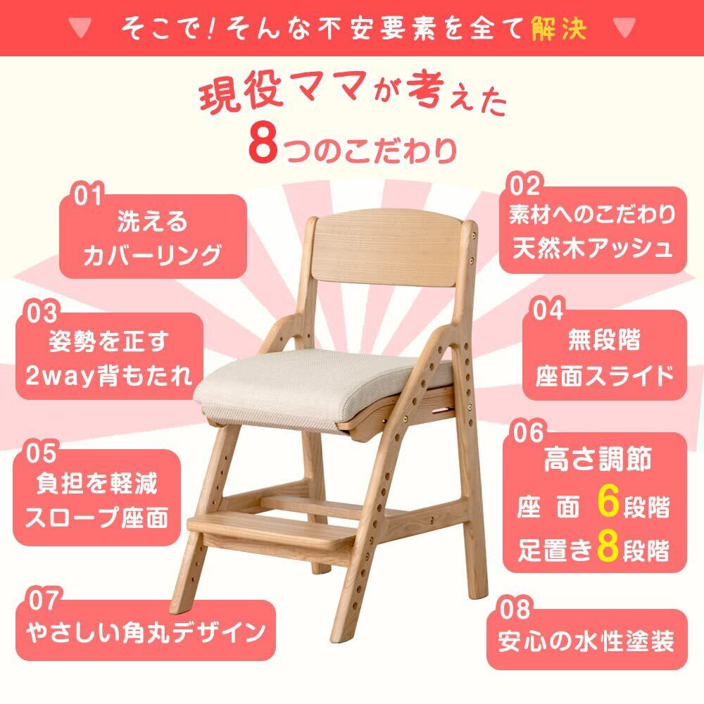【スタッフのおすすめポイント!】 ・座面カバーは洗えるカバーリング ・美しい木目と耐久性を兼ね備えたアッシュ材使用 ・細かな調整でずっとジャストフィット ・奥行まで微調整!座面スライド ・2way背もたれで正しい姿勢に ・高さ調節 座面6段階/足置き8段階 ・安全性にすぐれた水性塗装を使用