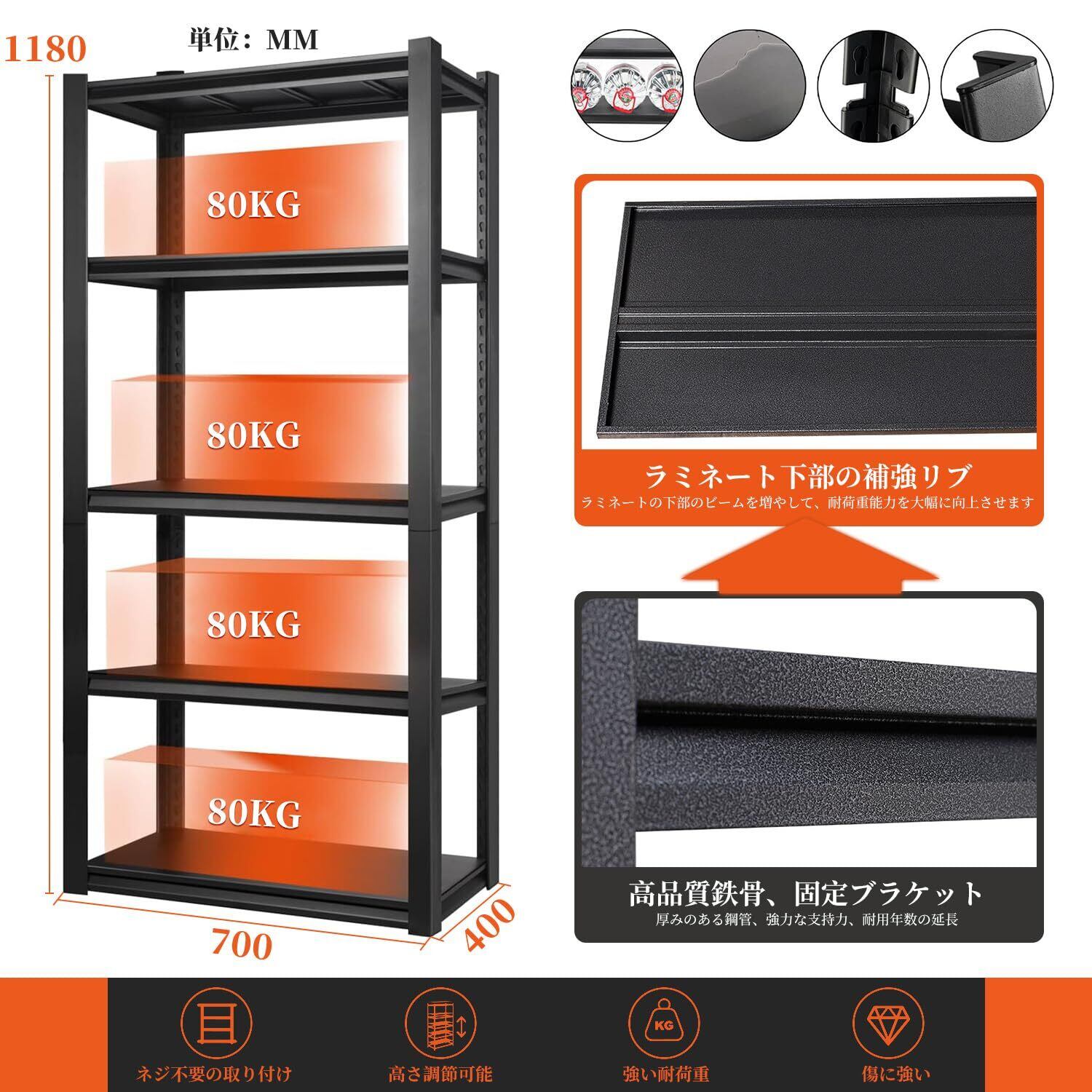 【調節可能な棚】この収納棚ユニットの各棚はさまざまな高さに調整でき、カスタマイズ可能な収納ソリューションを提供します(4段の棚は5段の棚のように取り外すことができず、他の棚は違いに問題がありません)。この機能は、ガレージや保管場所でさまざまなサイズのアイテムを整理するのに特に便利です