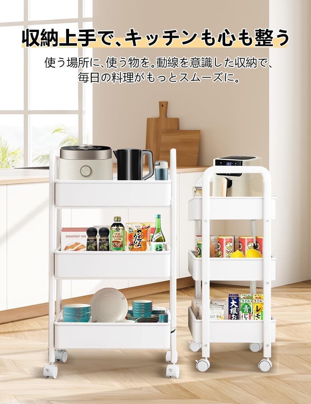 キッチンワゴン キャスター付き キッチンラック 【オール合金構造 】 スリム ワゴン 小物隙間収納 ペットボトルラック 冷蔵庫横 洗面所 収納 隙間ラック 3段 4段 スリムワゴン 細い棚 調味料棚 防錆 (白色3層)