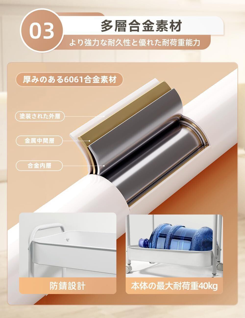 ■特徴: オール合金構造、スリムデザイン、キャスター付き、多目的収納、防錆