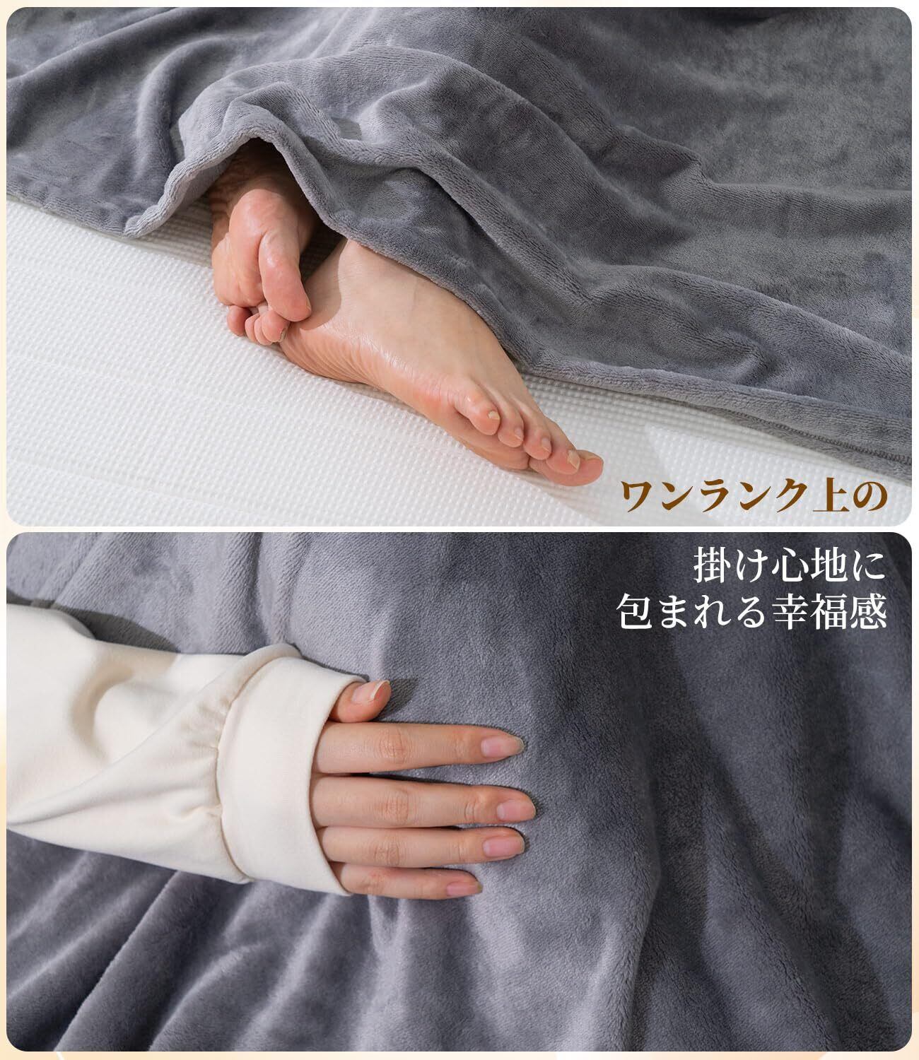 【しっとりとした肌触り】極細繊維の柔らかさと美しい光沢感が特徴。触れるたびに心地よさを実感できる、まるで包み込まれるようなふわふわ毛布です。