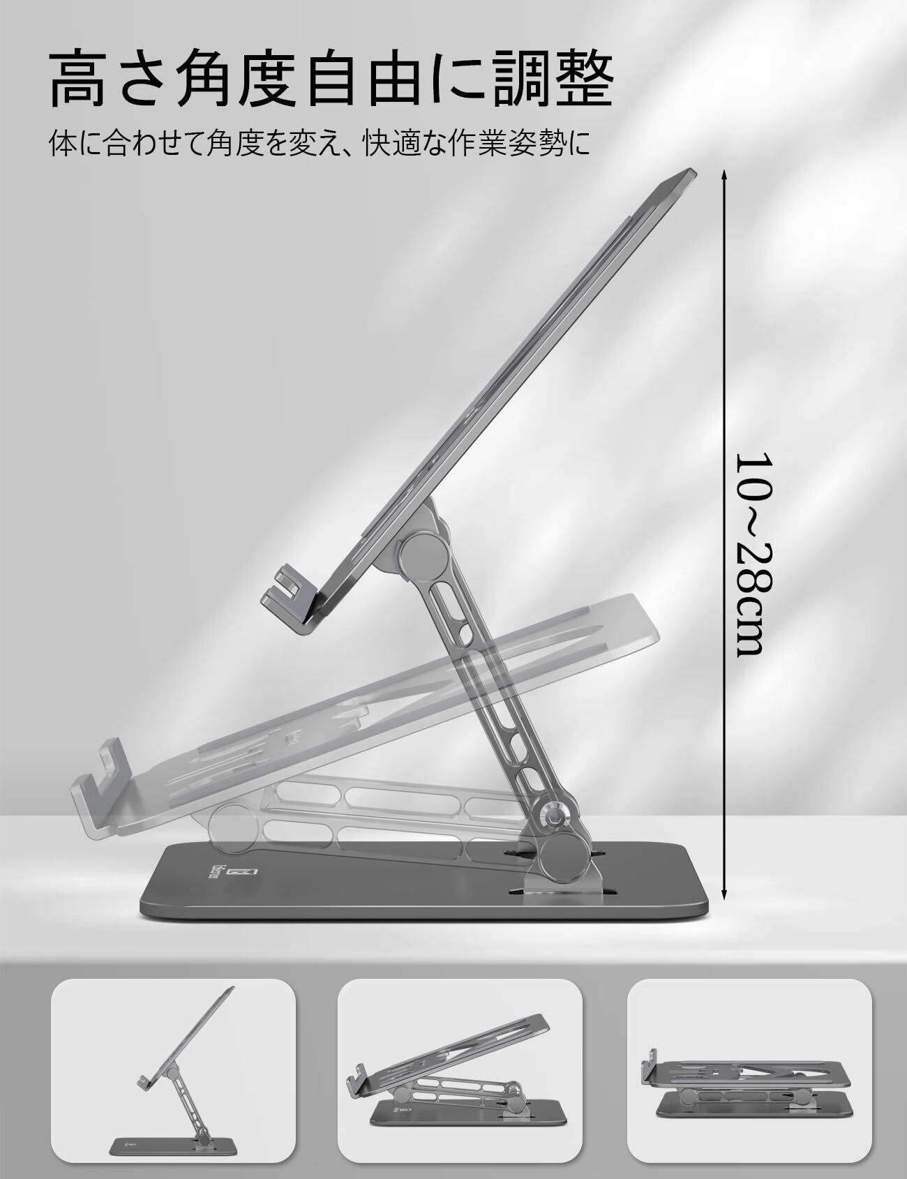 ツビワ(ToBeoneer) ノートパソコンスタンド PCスタンド タブレットスタンド laptop stand 液タブホルダー 折り畳み式 卓上 高さ角度調整 人間工学 姿勢改善 在宅ワーク アルミ製 ZOOM会議 Macbook,iPad,15.6インチまでのノートPCやタブレットに対応 (グレー)