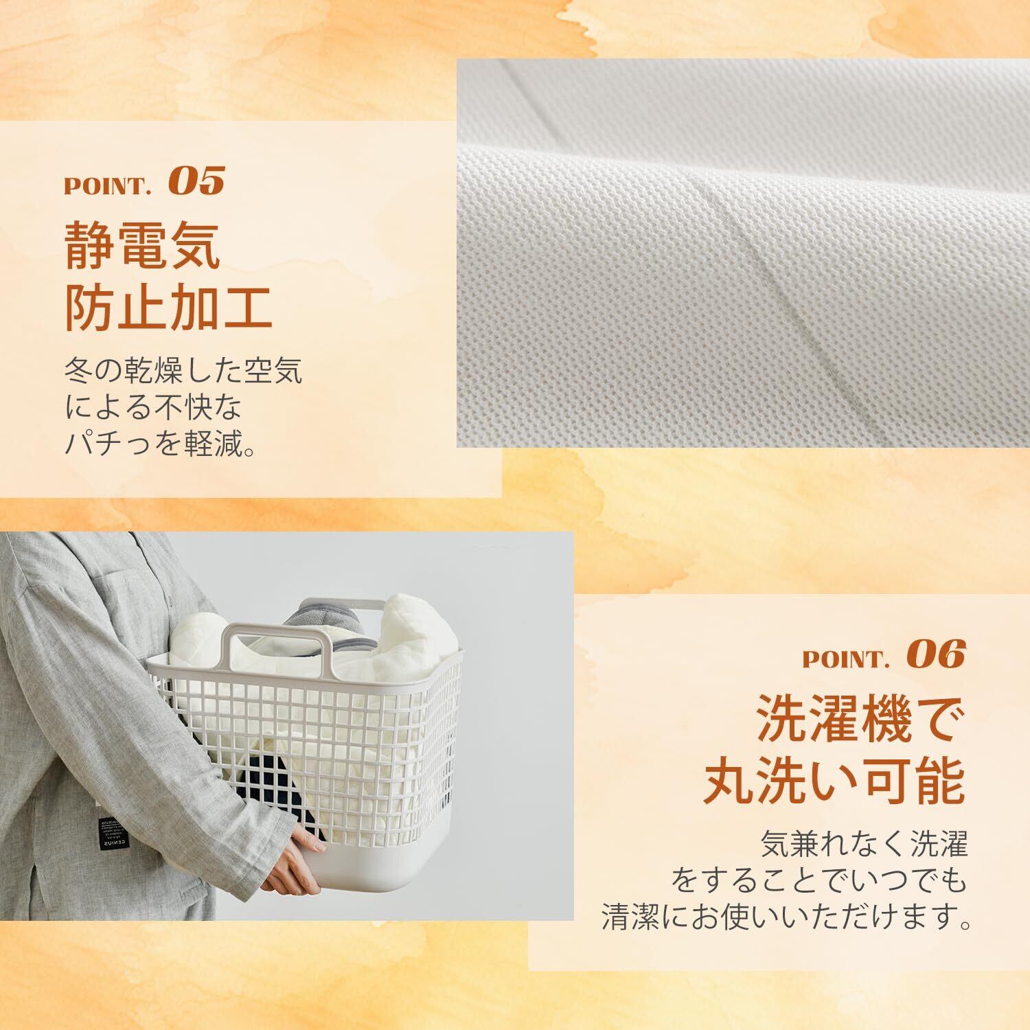 ワッフル素材を採用し、さらふわの触り心地。お肌に優しく、敏感肌の方でも安心してお使いいただけます。発熱機能により、冷え込みが厳しい夜でも快適な眠りをサポートします。