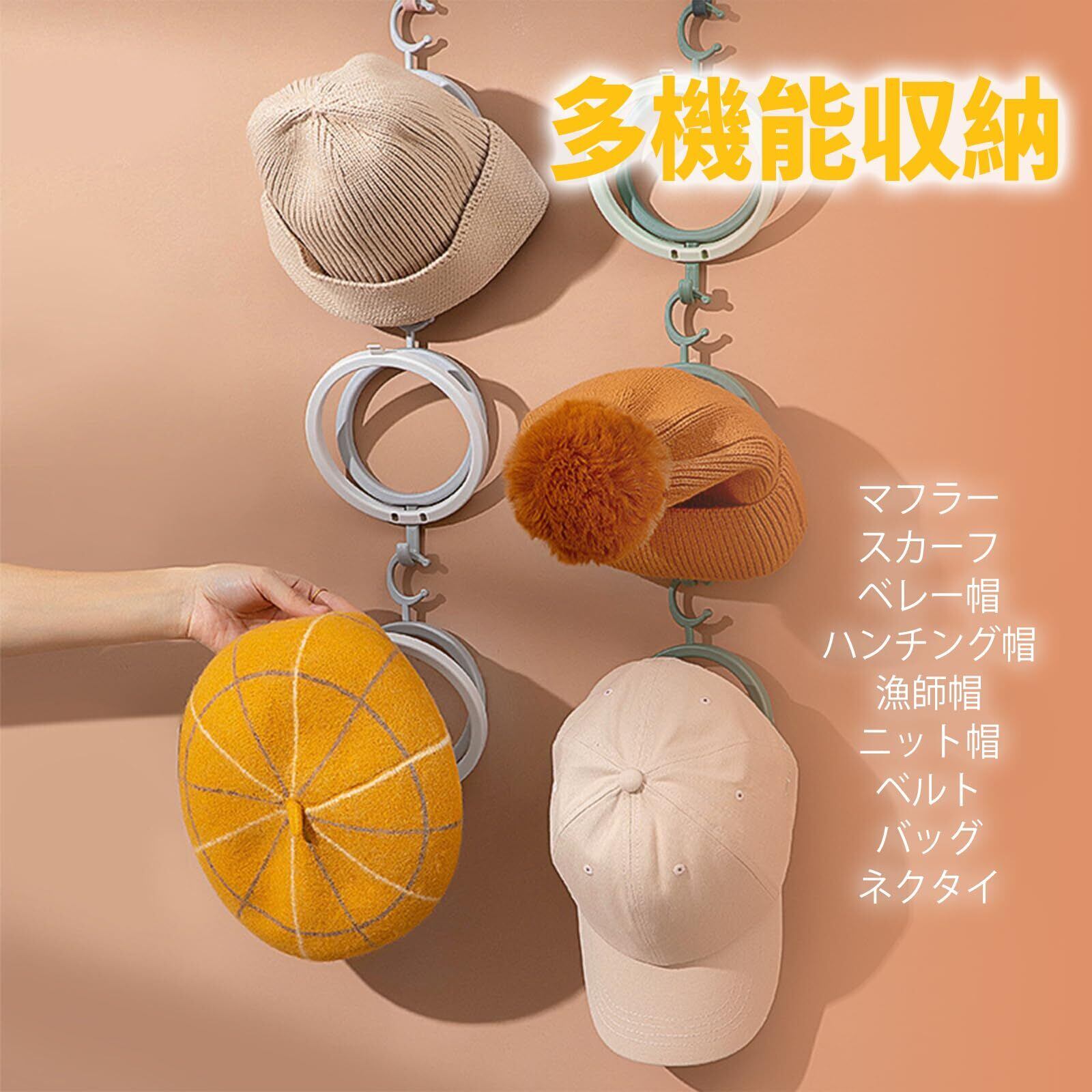 【多機能使用】お気に入りの帽子をコレクションしている方やショップのディスプレイなど多用途で活躍します。 帽子・スカーフ・小物雑貨をまとめて収納できる便利な連結ハンガー。