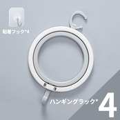 【使いやすい】リングの上のフックを、上のリングの下側にフックに引っ掛けるだけです。一番下に掛けたリングの下側のフックも使えます。輪っかのパーツは1個づつ別々の袋に入っており、それぞれの袋に1個、テープで壁などに貼れる粘着テープの付いたフックがついていました。こちらの商品と組み合わせなくてもこれ単独で使えます。