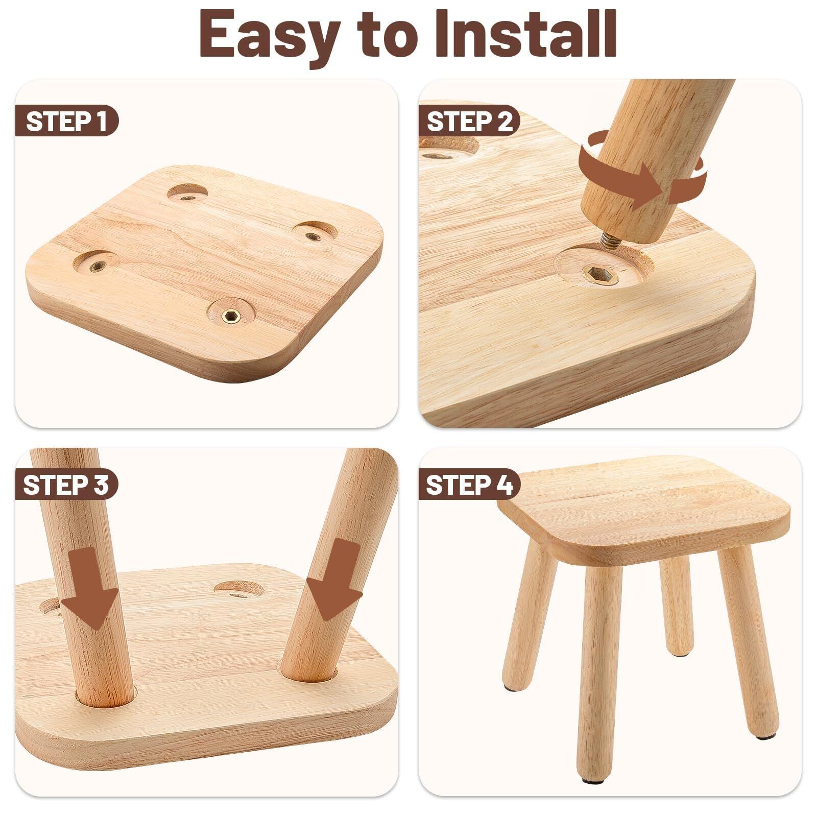 【組み立て易い】—木製の階段椅子は組み立て易いです。道具は不要です。4本の脚を2 ~ 3分でねじ込むことができます。