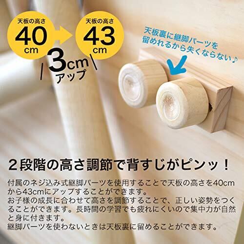 継ぎ脚で高さを2段階(40cm / 43cm)に調整可能。