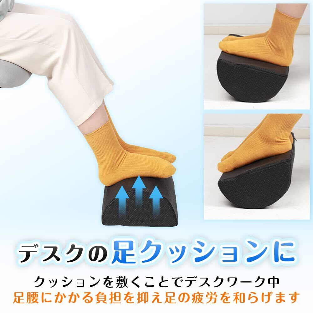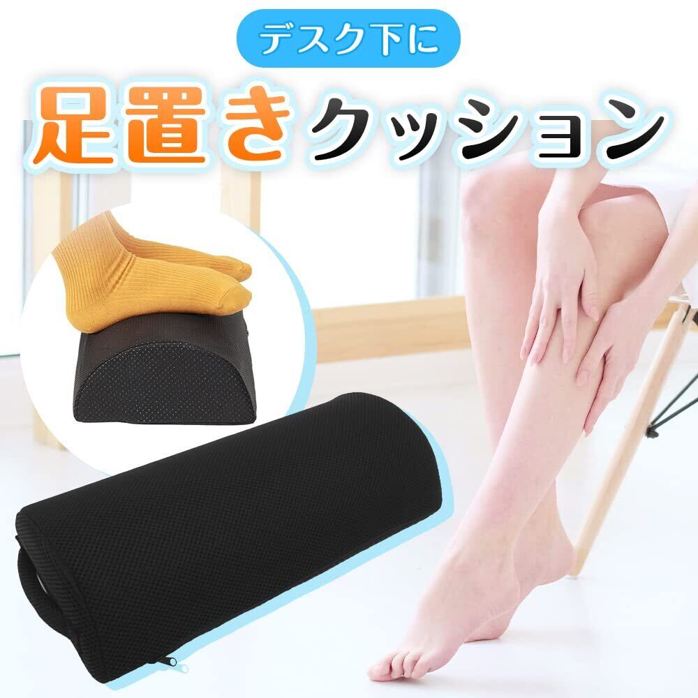 足枕 フットレスト 半円形クッション メッシュ素材 通気性 カバー取り外し可能 お手入れ簡単 (ブラック)