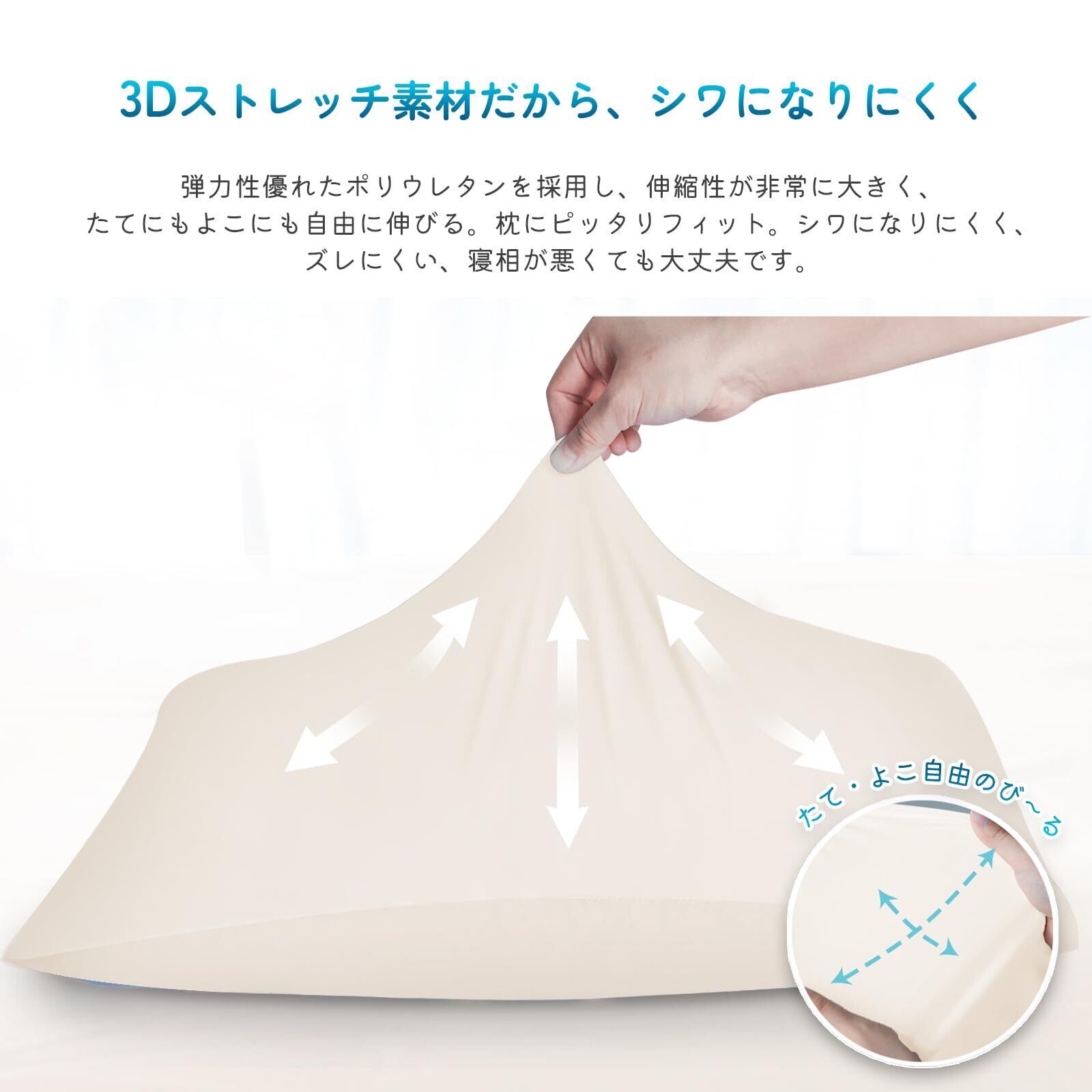 【伸縮性抜群 さまざまな枕に対応】枕カバー本体のサイズは33x53cmです、『3Dストレッチ』特性を持ち、タテにもヨコにも伸びるので、30x50cm~43x63cmの枕に適用で、きれいにフィットします。