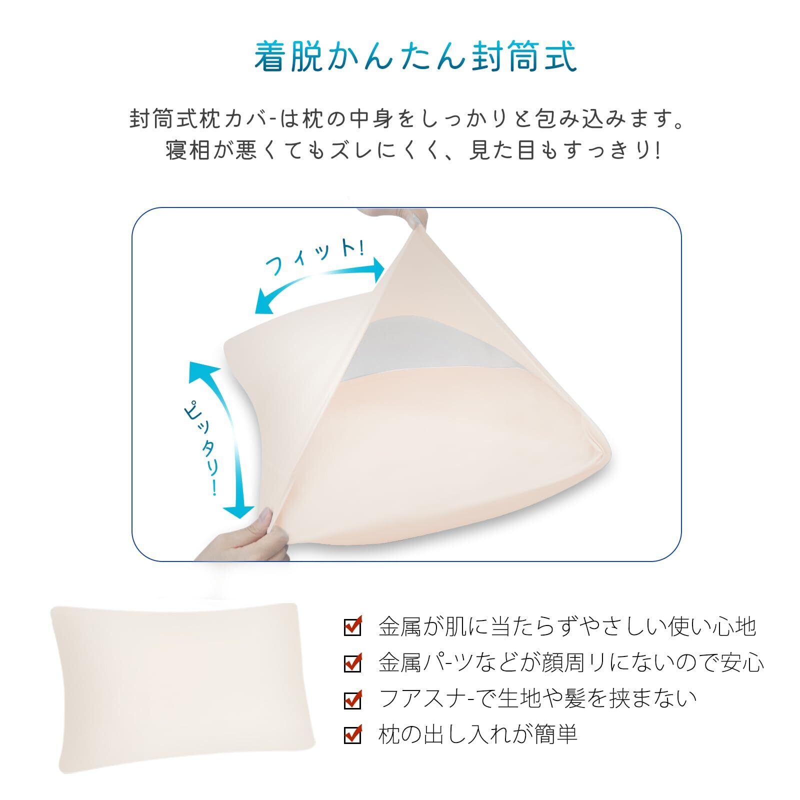【封筒式 ぴったりフィットで家事時短】まくらカバーはファスナーなどの金具を一切使っていないため、生地を噛んだりする心配もありません。ひんやり枕カバーは優れた伸縮性が持つので、取り付け、着脱も簡単、きれいなフィット感。