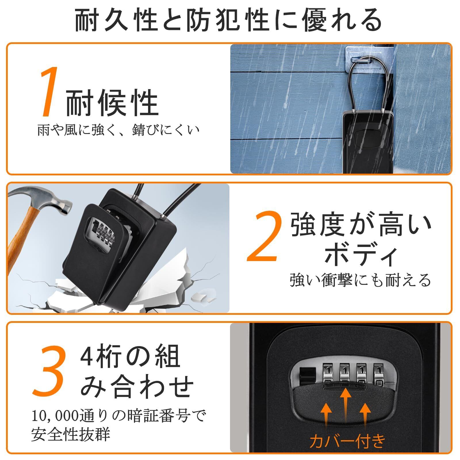 本製品は、防水仕様であり、雨や湿気の多い場所でも、安心して鍵を保管できます。しっかりとしたワイヤー(長さ28cm)が付属しており、固定したい場所にしっかりと取り付け可能です。