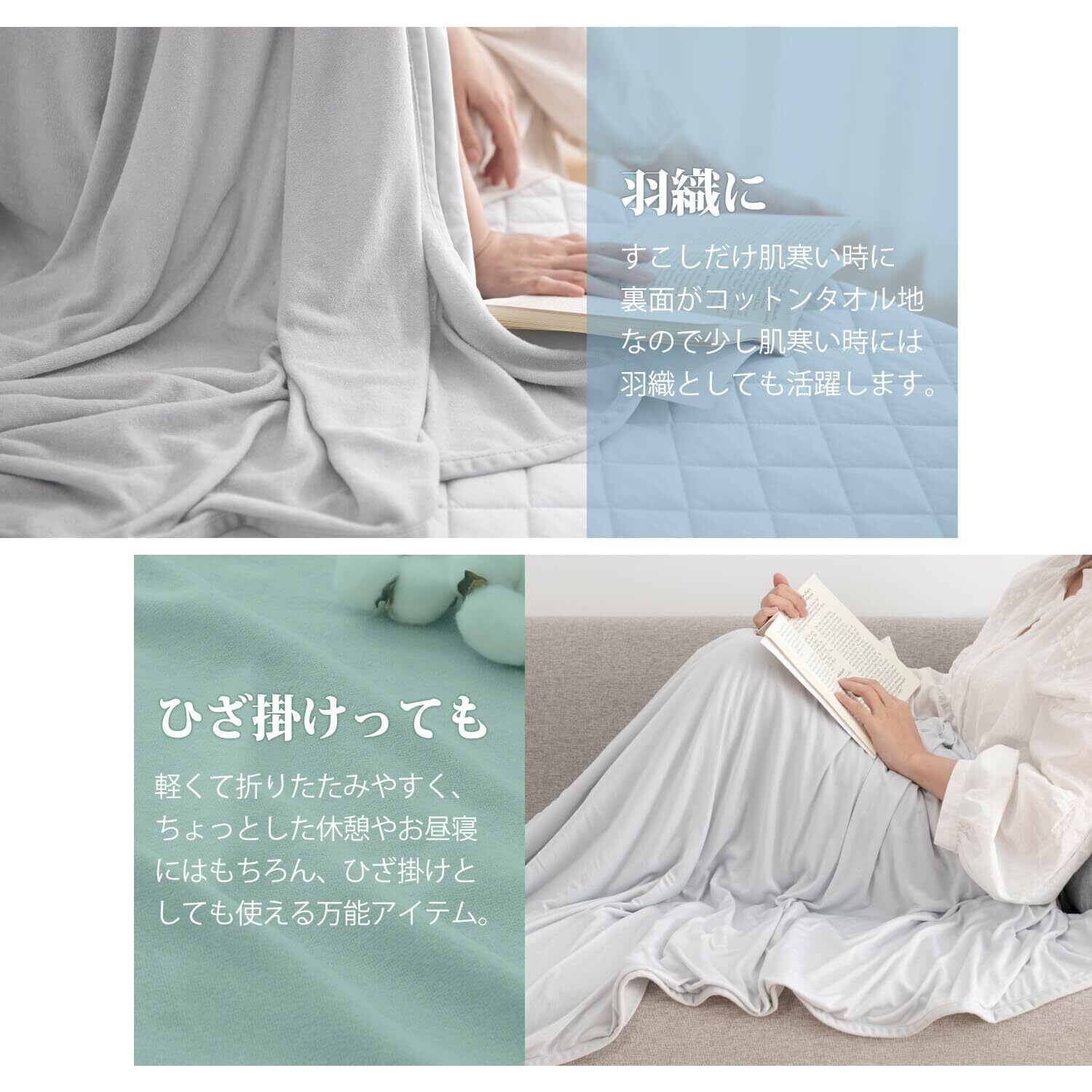 このタオルケットは、両面使用可能で、片面はひんやり感のある接触冷感素材、もう片面は肌触りの良い素材に仕上げられています。気温や好みに合わせて、最適な面を選んでお使いいただけるので、様々なシーンで活躍します。
