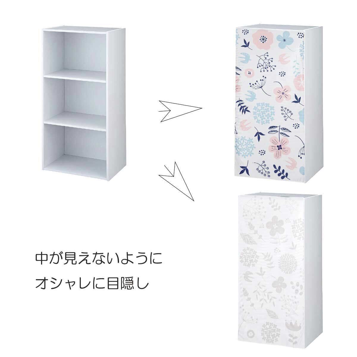 中身が見えてしまうカラーボックスを手軽におしゃれに目隠しできる北欧風花柄ミニカーテンです。ポップな花柄で北欧風インテリアにも合わせやすい!※カラーボックス自体は商品に含まれません。