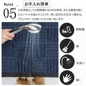 この玄関マットは洗濯機でお手入れ可能なので、いつでも清潔に保てます。泥やホコリをしっかり落とせるため、オフィスや飲食店などの業務用としても最適です。家庭用はもちろん、エントランスマットとしても大活躍します。