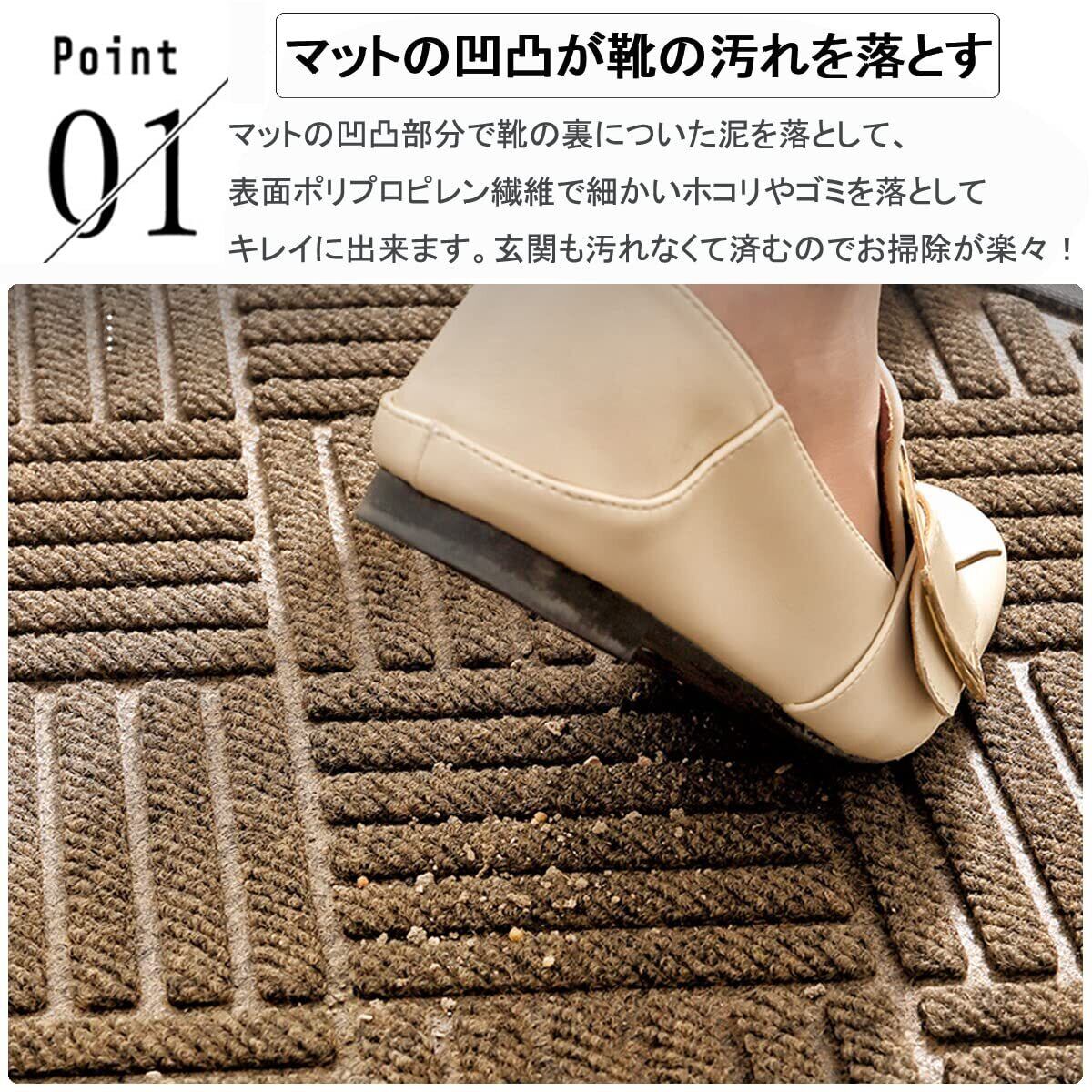 【泥落としマット】マット表面の凸凹設計は水はけが良く、土ぼこりや泥をしっかりと掴み落とします。ホコリ汚れや水などを部屋に持ち込まなく、お部屋のフロアはいつでも清潔に保たれます。
