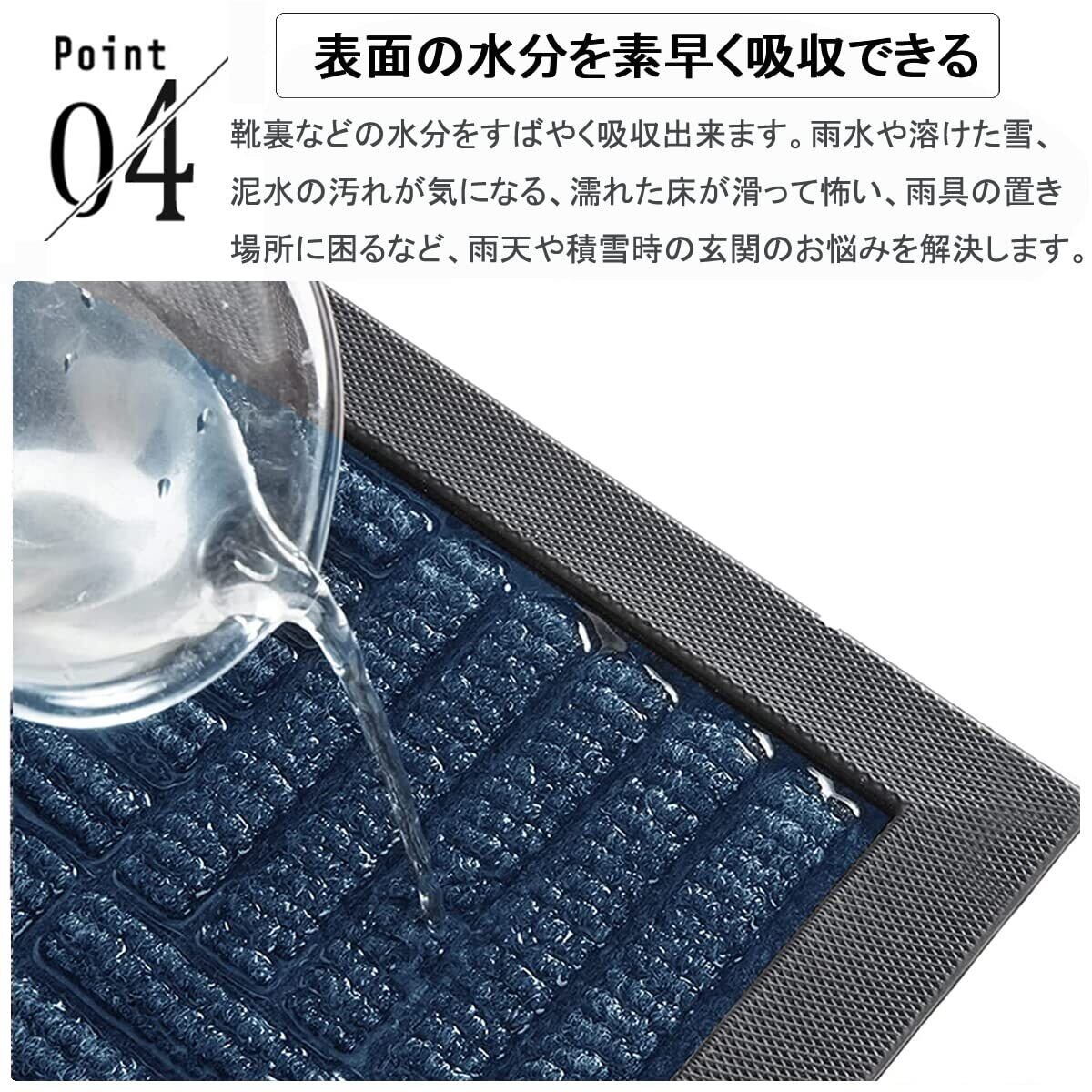 【耐磨性抜群&滑り止めマット】玄関マットは表面ポリプロピレン繊維な高品質材料で作られて、優れた強度と耐摩耗性を持っています。裏面にはしっかりと滑り止め加工が施されますので、マットのズレを防ぎます!子供とお年寄りがいるの家庭でも安心してお使いいただけます。
