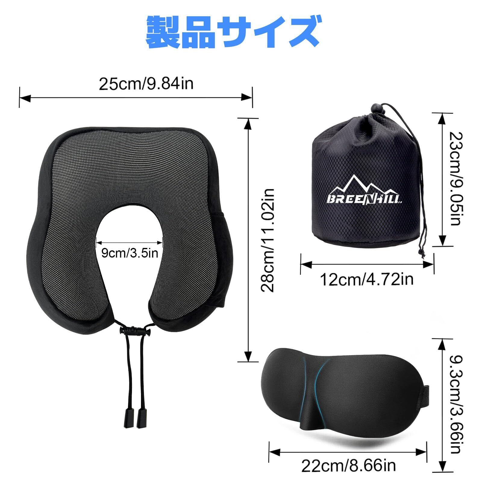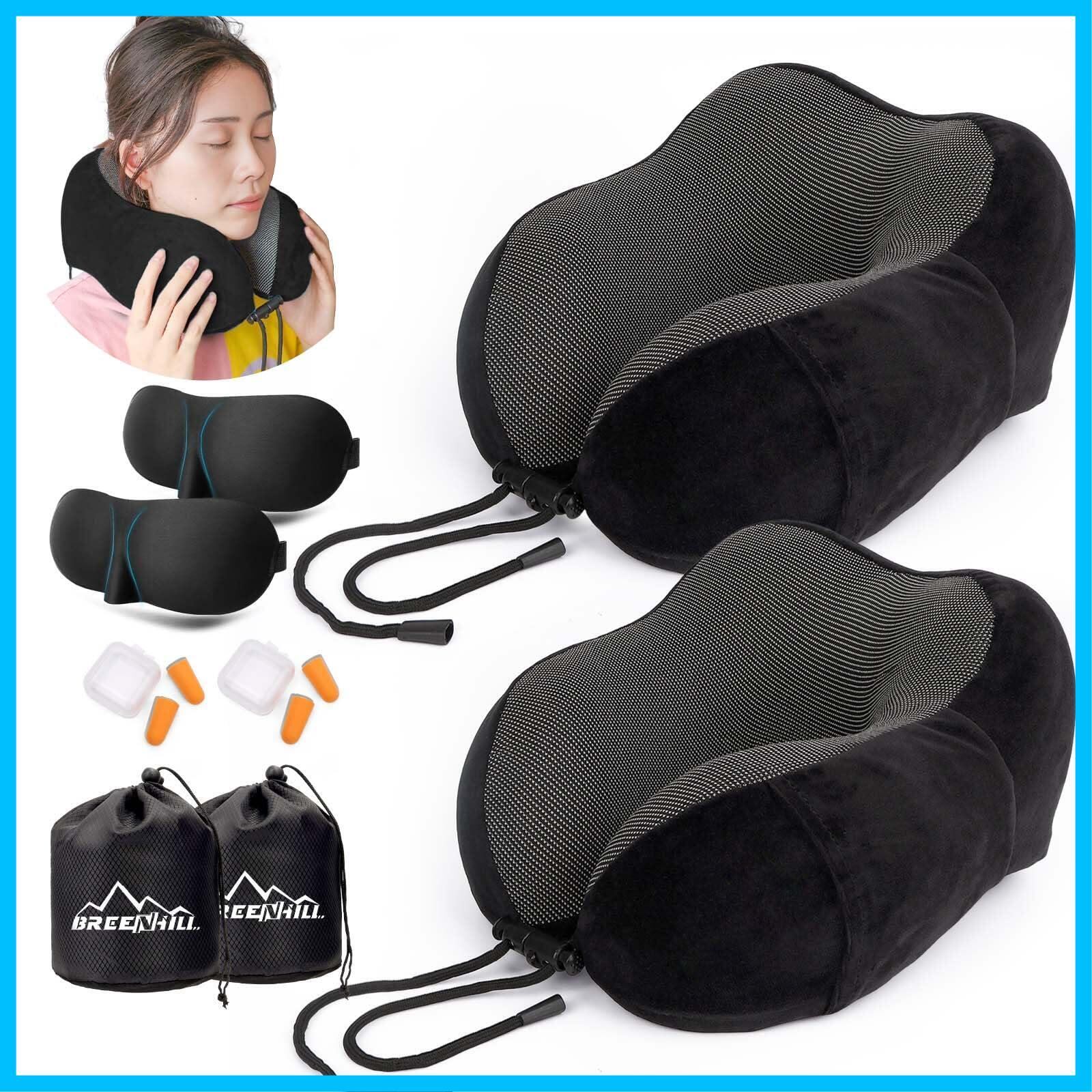 【在庫処分】BREENHILL ネックピロー 低反発 首枕 U型 携帯枕 折りたたみ式トラベルピロー(収納袋付き)、軽量、洗濯可能、キャンプ/旅行/オフィス/家庭用車/飛行機/列車/バス用トラベルアクセサリ (2, ブラック, 標準)