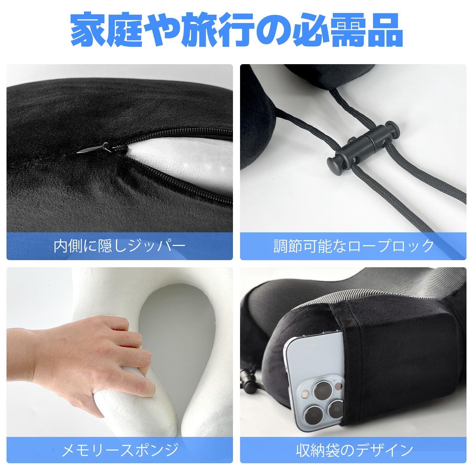 オフィスから旅行まで、あらゆるシーンで活躍: このネックピローは、長距離フライトや新幹線の旅だけでなく、オフィスの昼休みにもぴったり。どんな場所でも快適なサポートを提供し、首をリラックスさせてください。一度使ったら手放せなくなる、多用途なアイテムです。