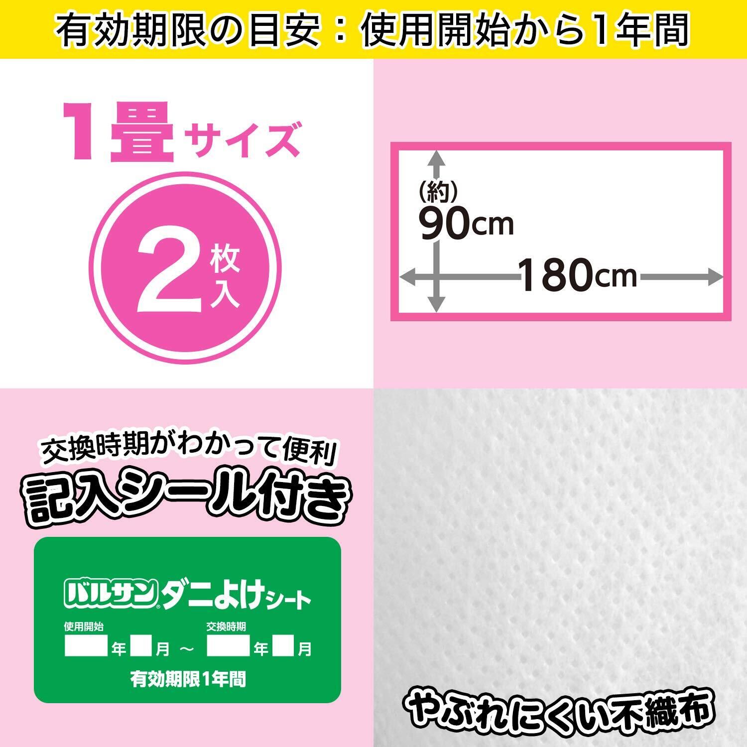 【数量限定】レック(LEC) バルサン ダニよけシート 1畳サイズ 90×180cm 2枚入×2個 (効果1年持続) 抗菌加工 無香料 ホワイト H00287