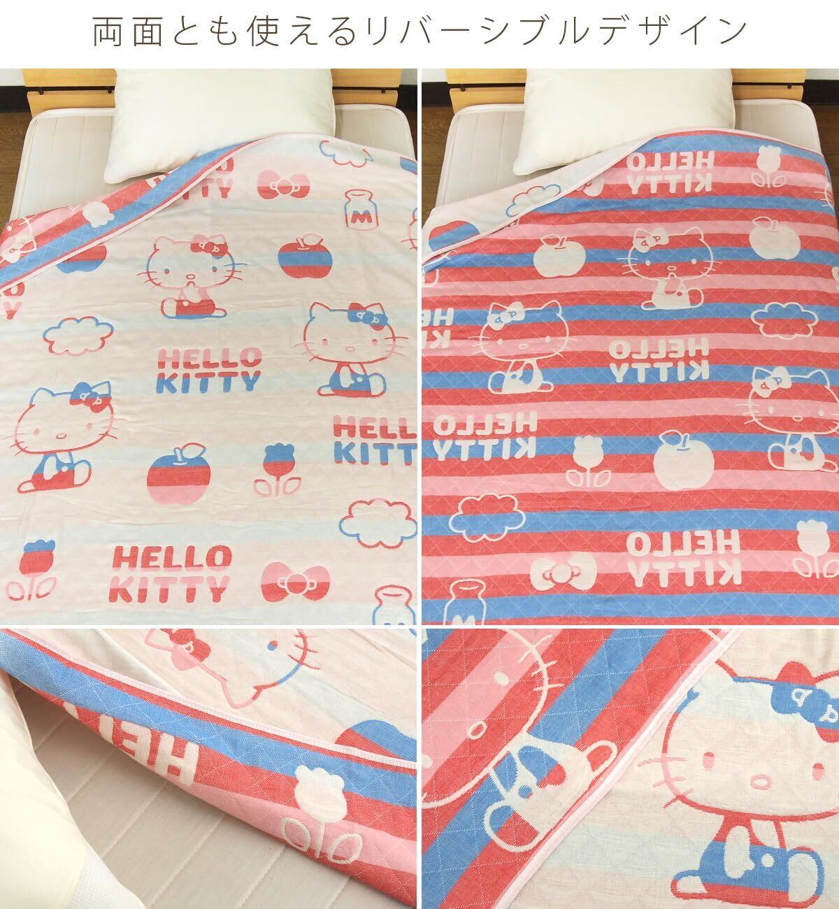 リヴェール ハローキティ ガーゼケット シングル 3重ガーゼ 綿混 タオルケット ブランケット 夏掛け 肌掛け サンリオ キティちゃん グッズ