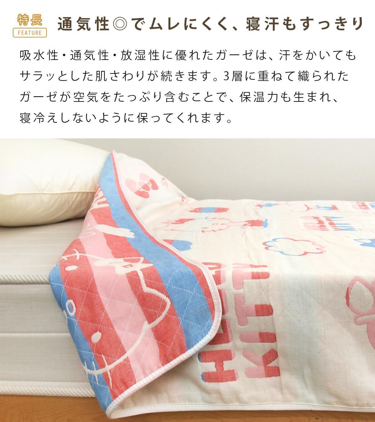 さらっと優しい肌触りの3重ガーゼケット/キティのかわいいシンプルデザイン。