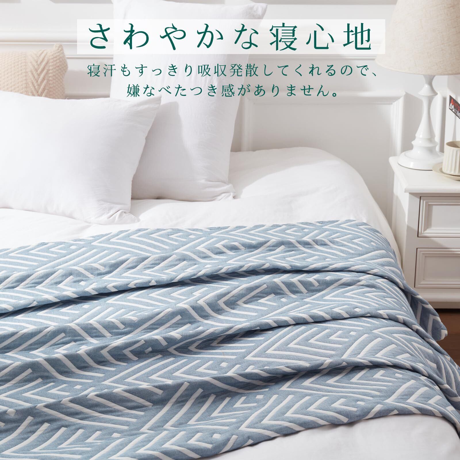 【オールシーズン快適】暑い夏は1枚で、冬は適度な保温力を発揮し、掛布団との間にかけていただくと蒸れにくく、一年中快適にお使いいただけます。寝具としてだけでなく、ソファカバー、ベッドスロー、読書時のひざ掛けにはとても使いやすいです。お部屋のデコレーションとしてもお勧めです。