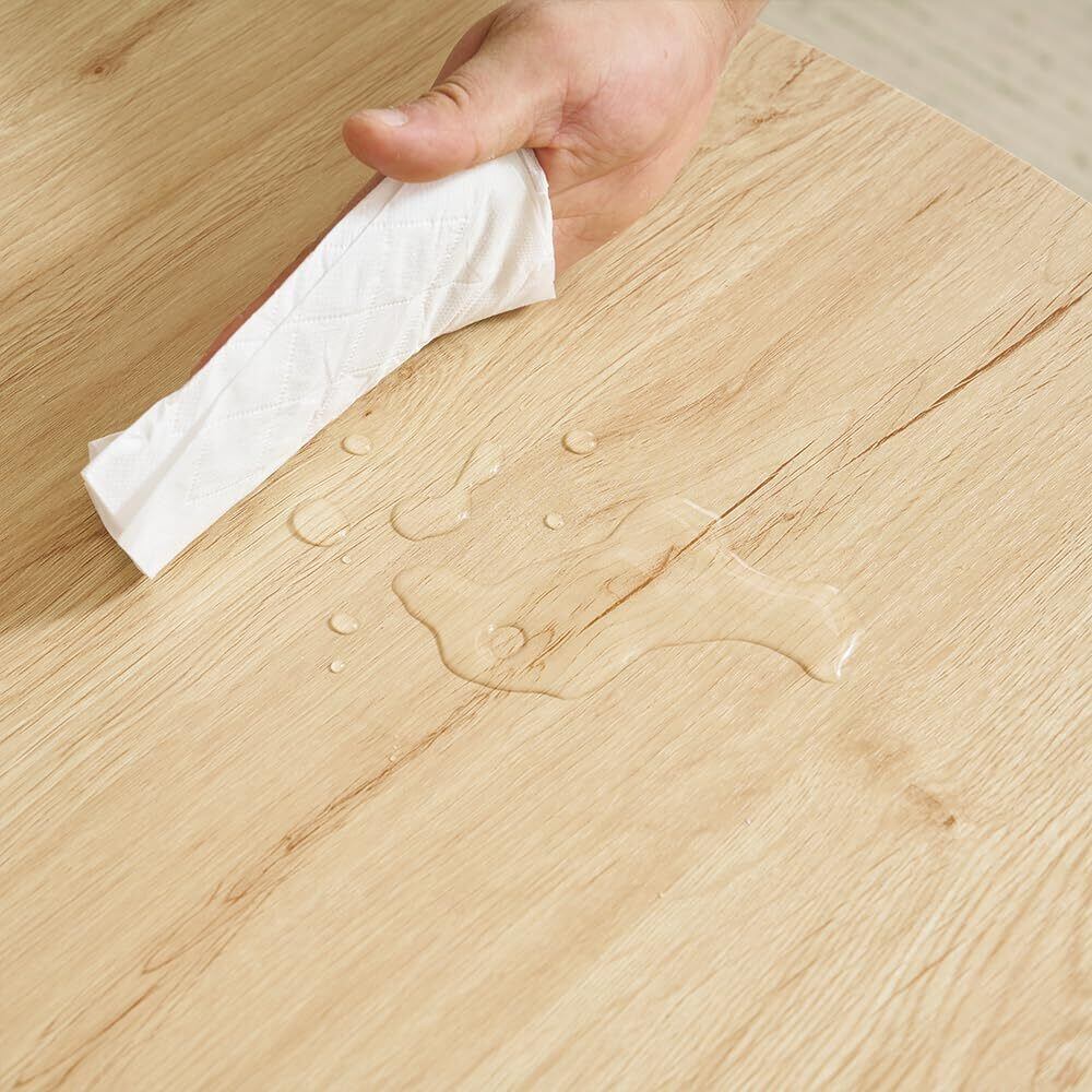 天板、椅子の柄部分は優れた機能性を持ったPVC化粧板です。水や汚れに強くさっと拭くだけで綺麗に。 角があたっても痛くない丸みがあるつくり。 【温もりあふれる木目調】3DのPVC加工により、まるで天然木の木目と凹凸を再現。自然な質感でお部屋の雰囲気もワンランクアップ。 【安全面にもしっかり配慮した設計】どんな方にも安心してお使い頂けるよう、安全面にもしっかり配慮したダイニングセットです